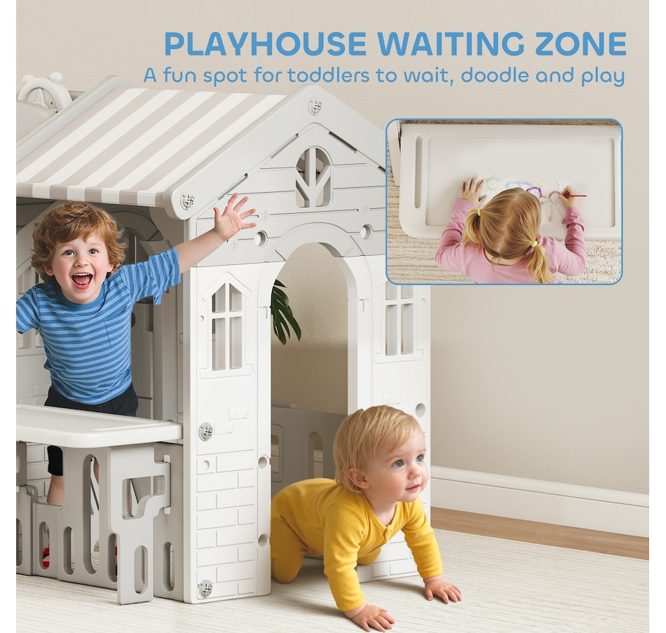 ● A spacious playhouse and whiteboard inspire creativity and play;