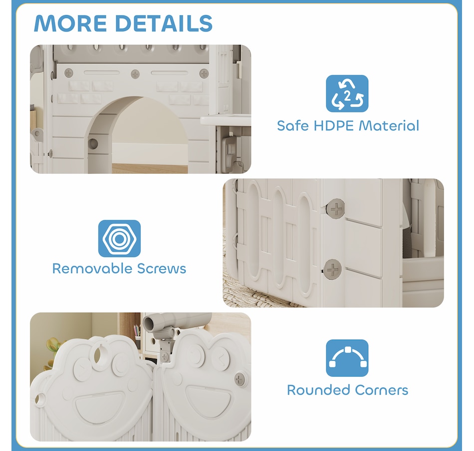 ● Playhouse Size: 39.4" L x 31.3" W x 43.7" H (100 x 79.5 x 111 cm);