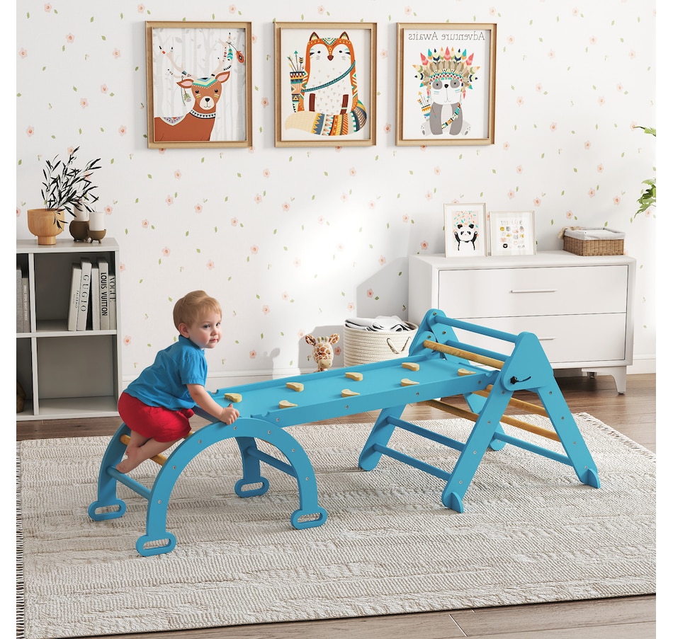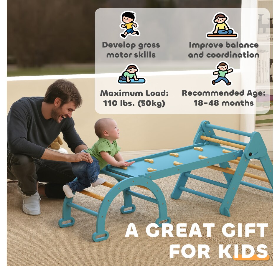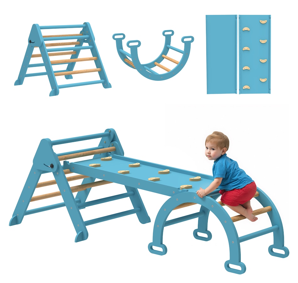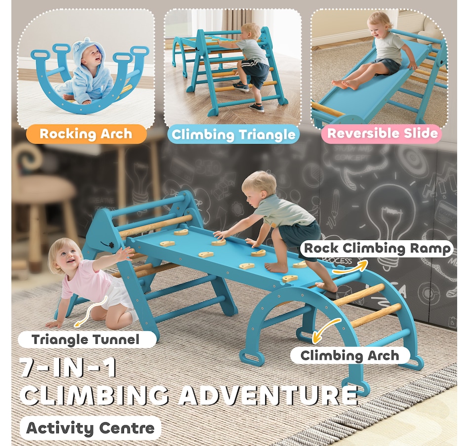 Create a safe, fun space for your child with this Qaba 7-in-1 pikler triangle set! Suitable for children ages one to four, it includes a triangle ladder, slide board and arch ladder to promote active play. Features like a transformable slide and rocking arch help develop balance, strength and coordination. It's space-saving and excellent for fostering both physical and cognitive growth through safe, creative play. A great choice for parents seeking fun and practicality!Features: