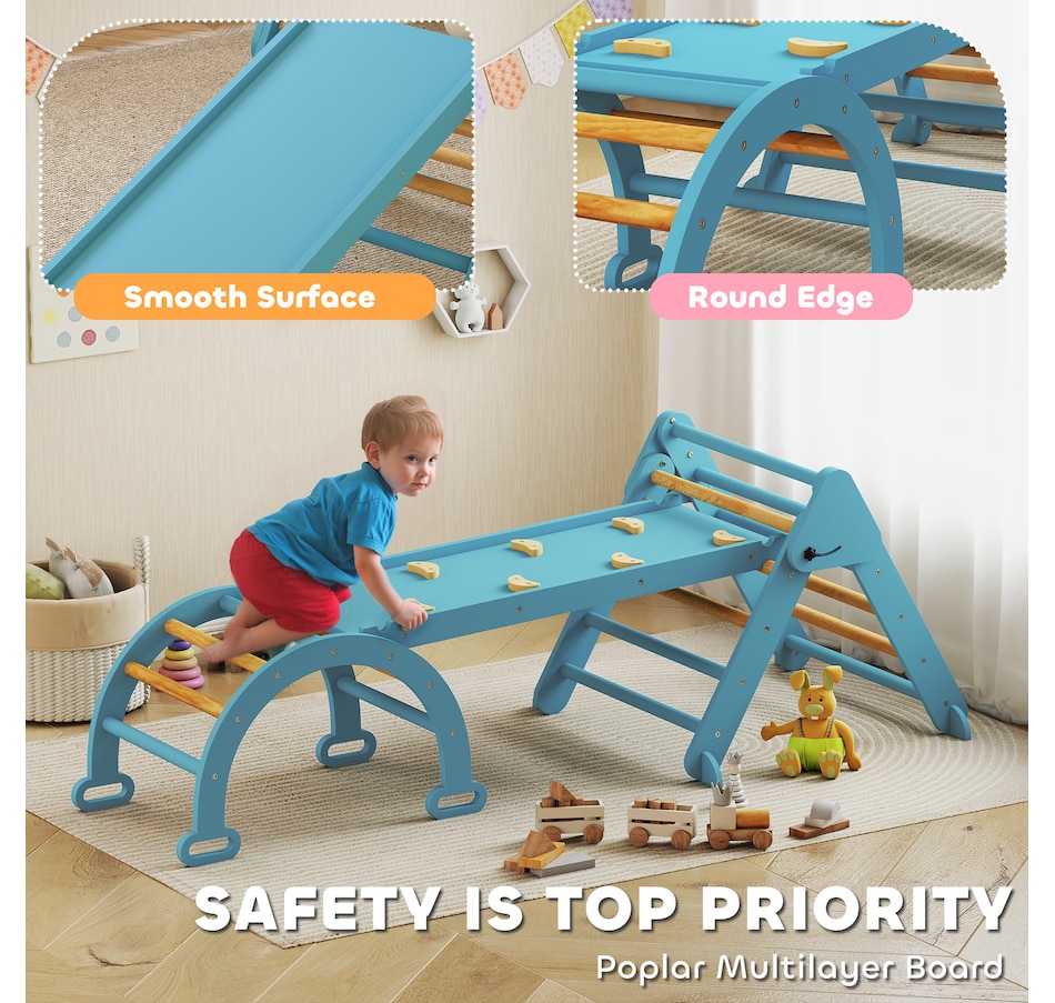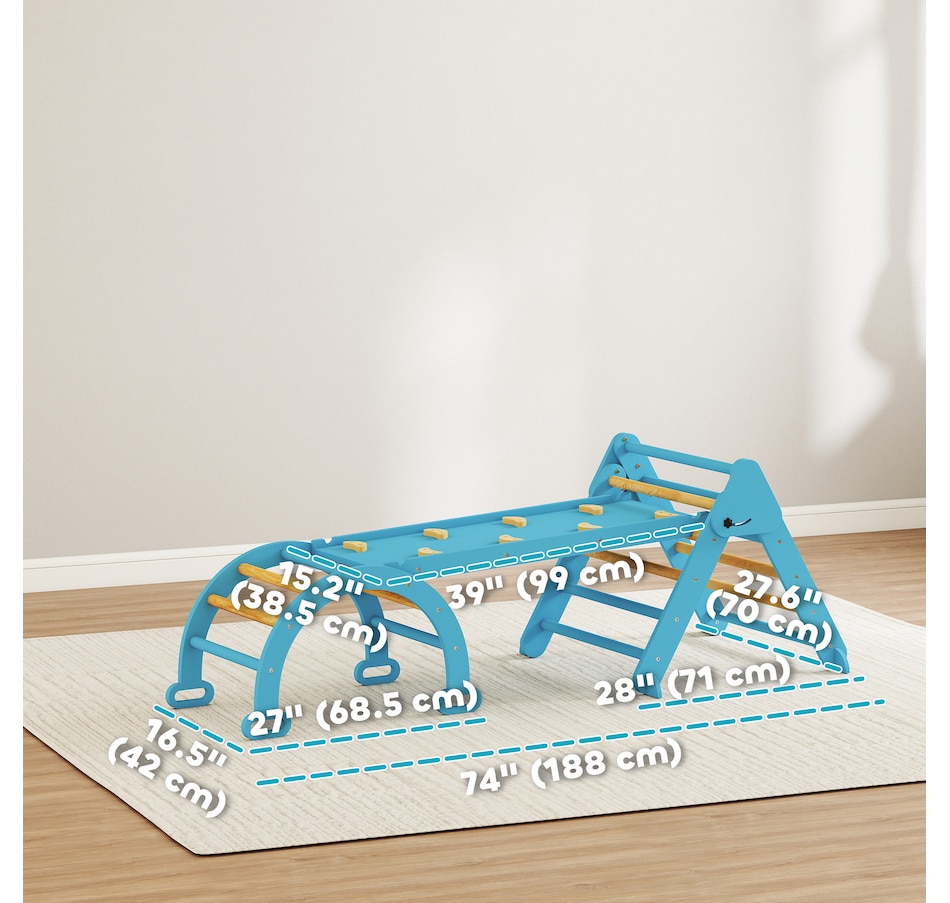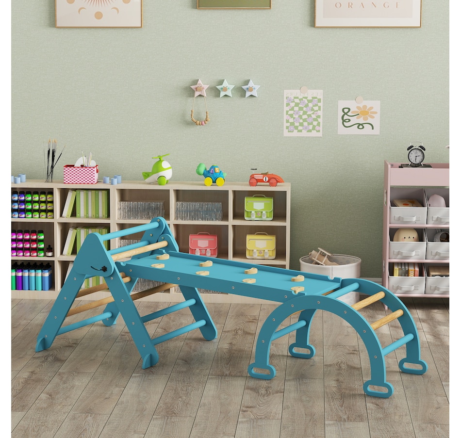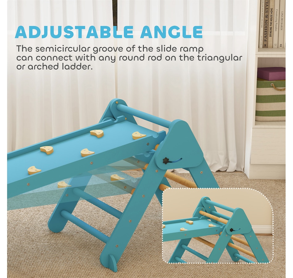 Create a safe, fun space for your child with this Qaba 7-in-1 pikler triangle set! Suitable for children ages one to four, it includes a triangle ladder, slide board and arch ladder to promote active play. Features like a transformable slide and rocking arch help develop balance, strength and coordination. It's space-saving and excellent for fostering both physical and cognitive growth through safe, creative play. A great choice for parents seeking fun and practicality!Features: