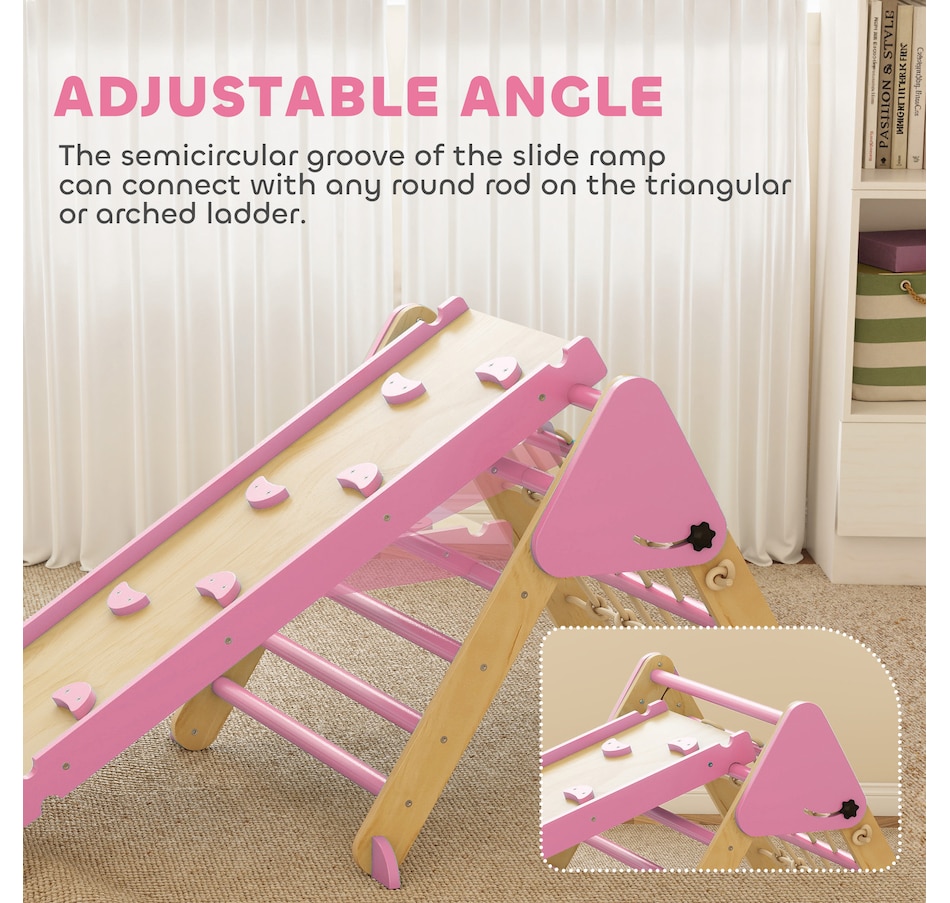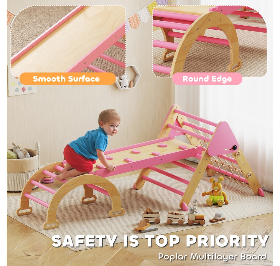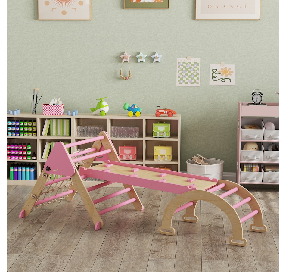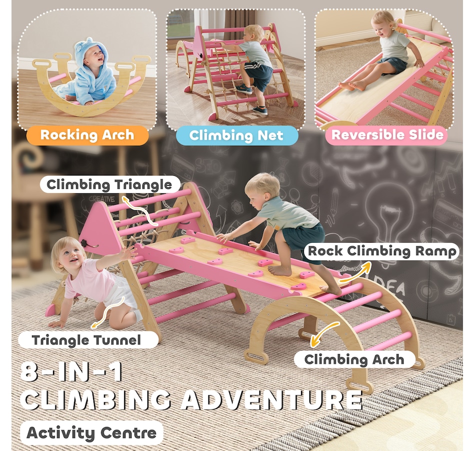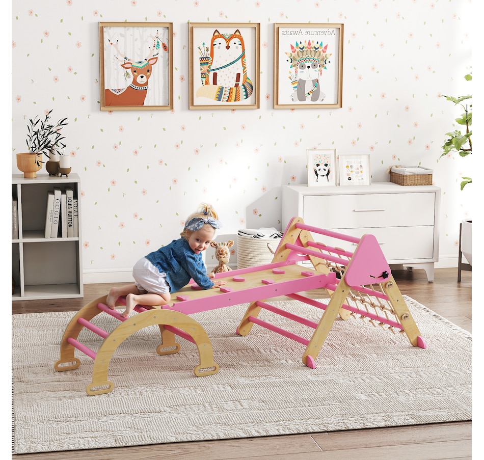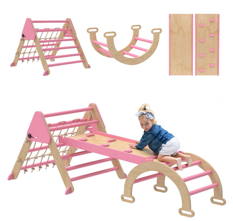 8-in-1 Foldable Pikler Triangle Set with Arch, Ramp and Ladder, Pink