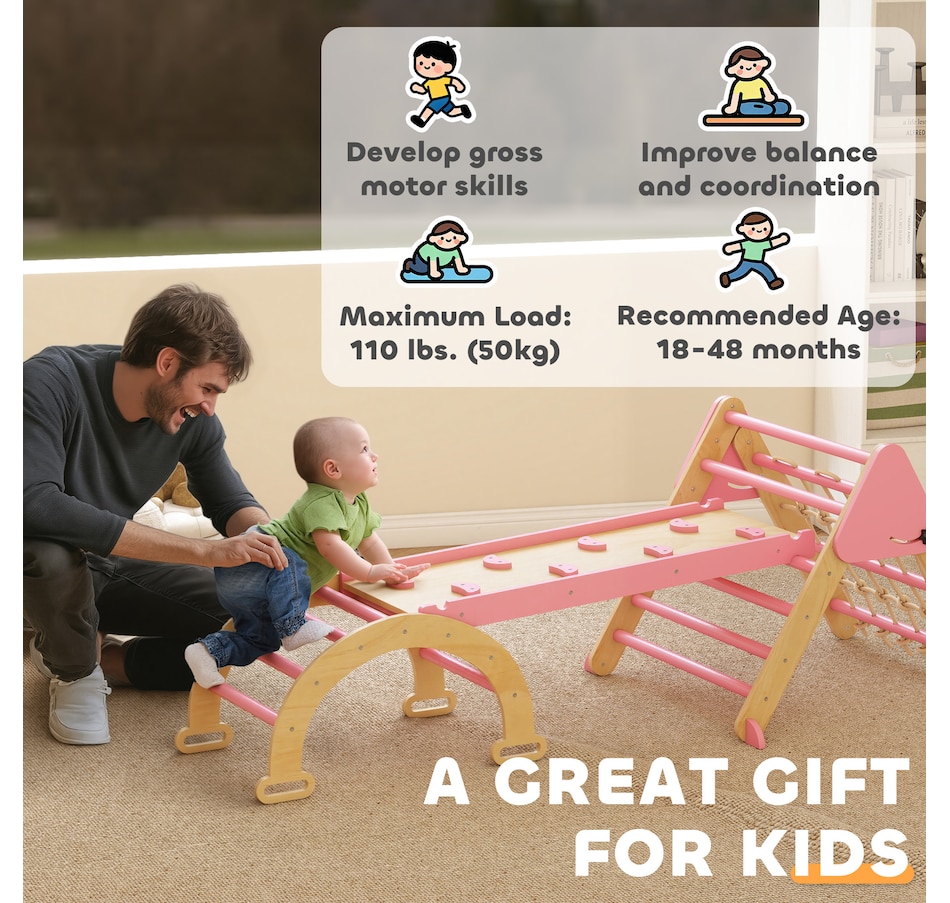Introduce endless adventure with our engaging play experience! The Qaba pikler triangle set transforms your space into a secure adventure zone. Its stability-enhanced design lets kids explore an eight-in-one play world, confidently building motor skills and balance. This Montessori-inspired toddler climbing frame encourages independent discovery, turning endless energy into joyful, developmental fun right at home. Foldable with hand-tightened screws for easy storage, it maintains tidy spaces.
