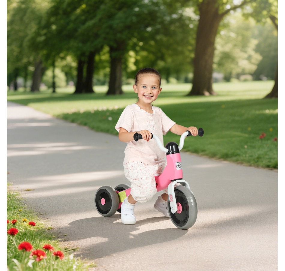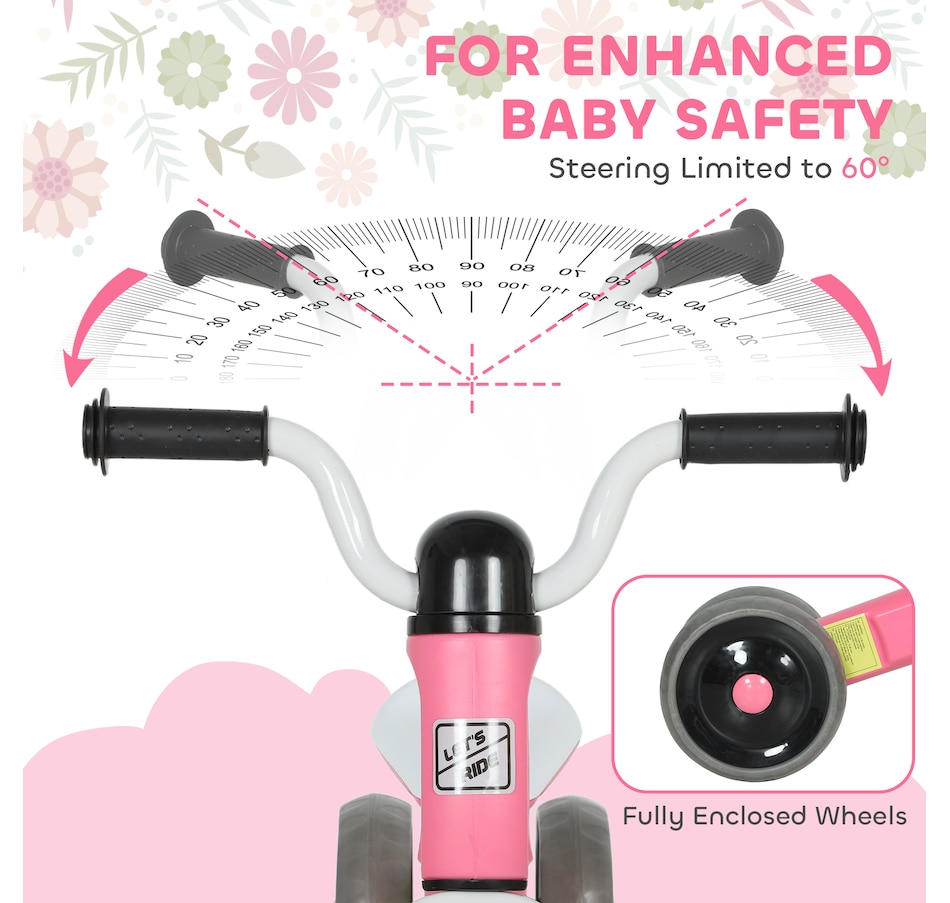 ● Fully enclosed wheels protect little feet during playtime.