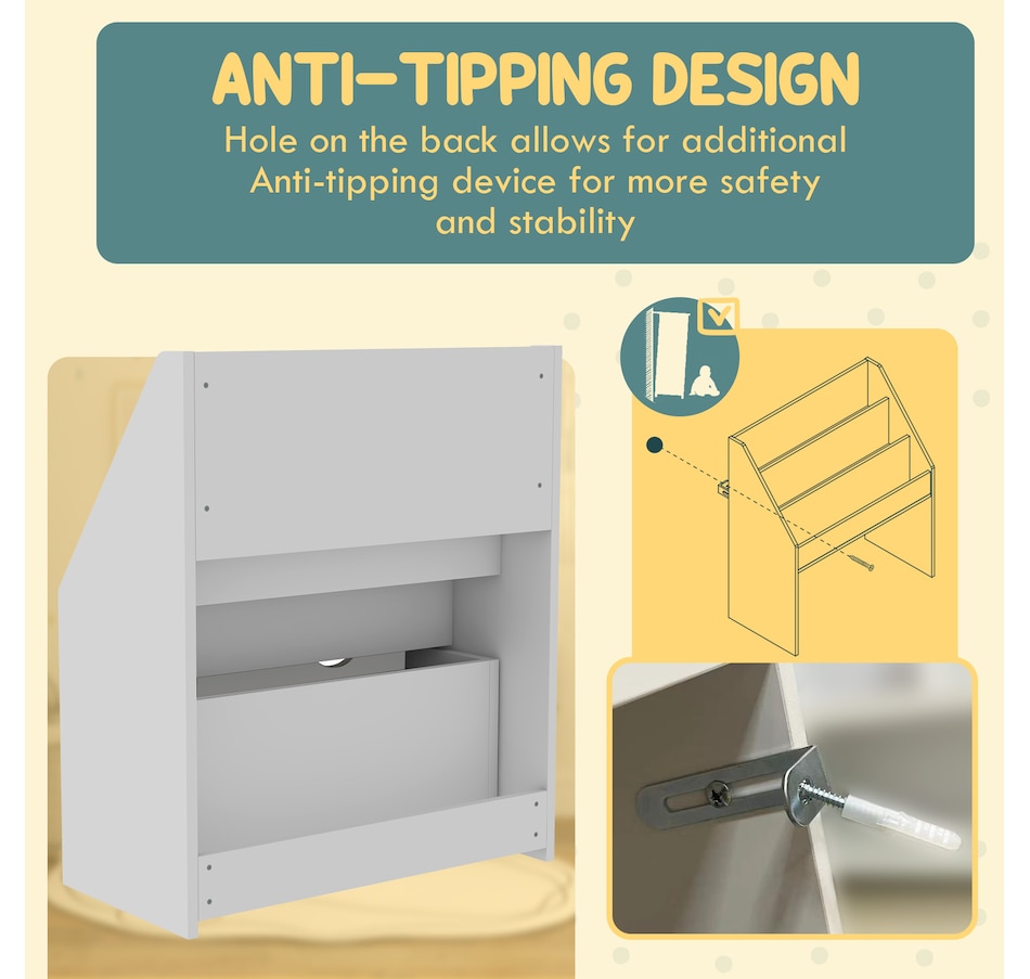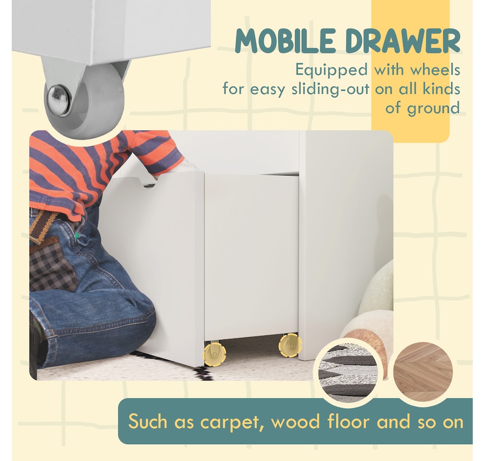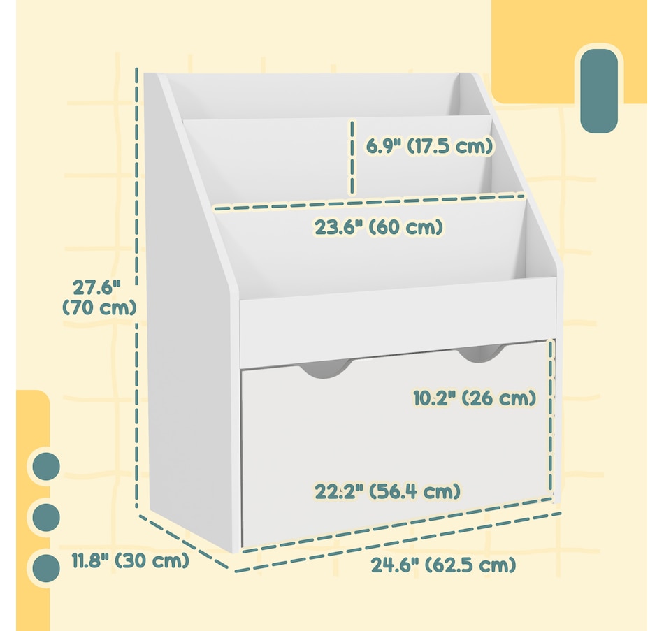 Discover a world of tidy with the Qaba Kids Bookcase, a charming white bookcase designed to keep your kid's room clutter-free. With three spacious shelves and a handy drawer on wheels, this children's bookcase makes storage fun and accessible. Safety is paramount, featuring a smooth surface and an anti-tip device for peace of mind. A delightful addition to any child's space!Features:
