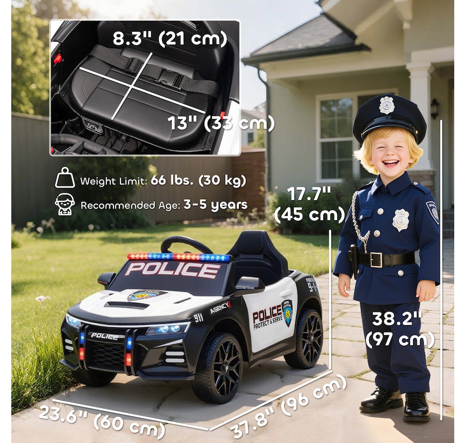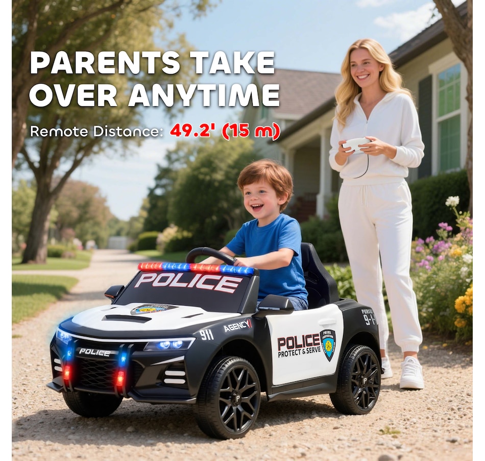 12V Kids Electric Ride on Police Car for Boys & Girls Age 3-5 years