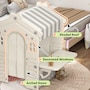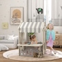 Step into a world of imagination with the Qaba Kids Playhouse! Featuring sleek design elements like arched doors with whimsical curtains and playful brick details. It includes a shaded top and decorated windows, transforming any indoor space into a bustling grocery store where kids can play both shopkeeper and customer, sparking endless creativity.Features: