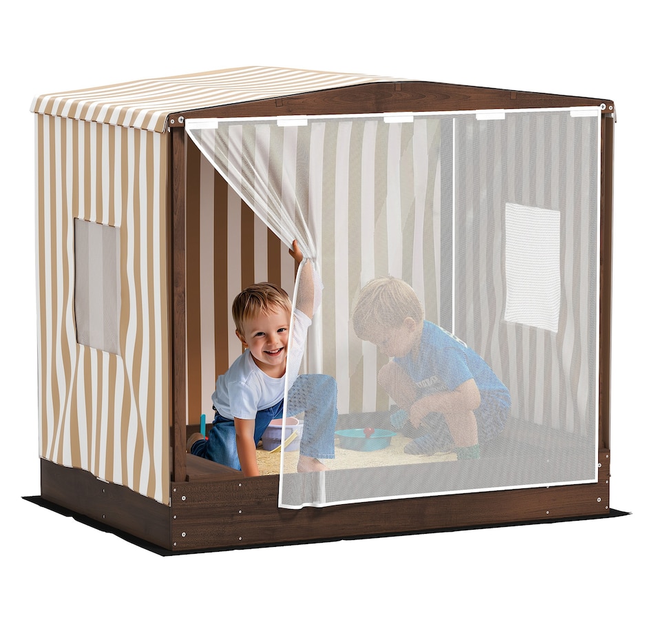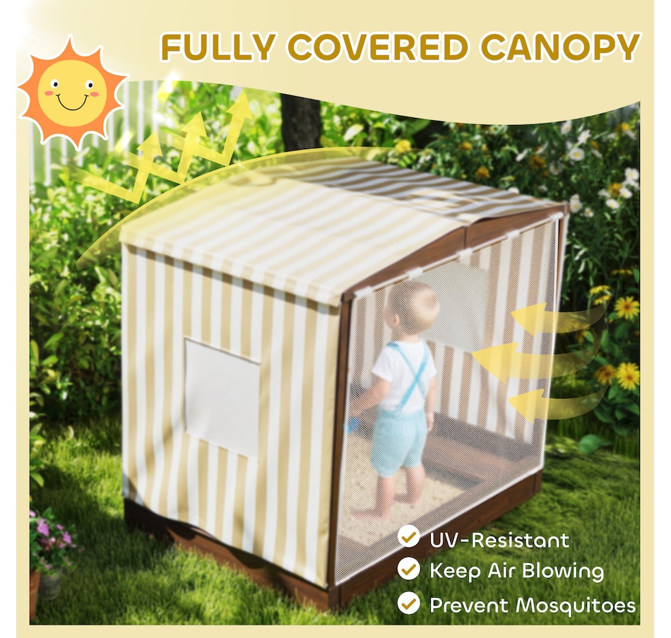 Kids Sandbox with Full Covered Canopy, for Ages 3-6, 56" x 40" x 52"