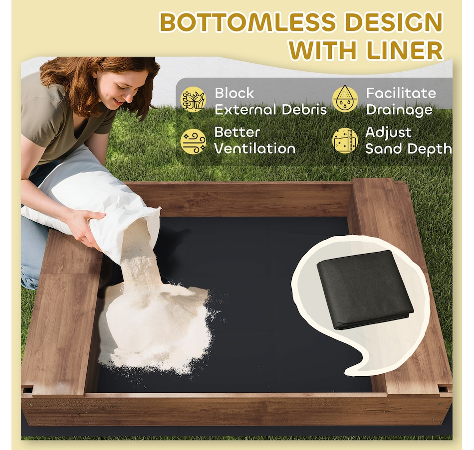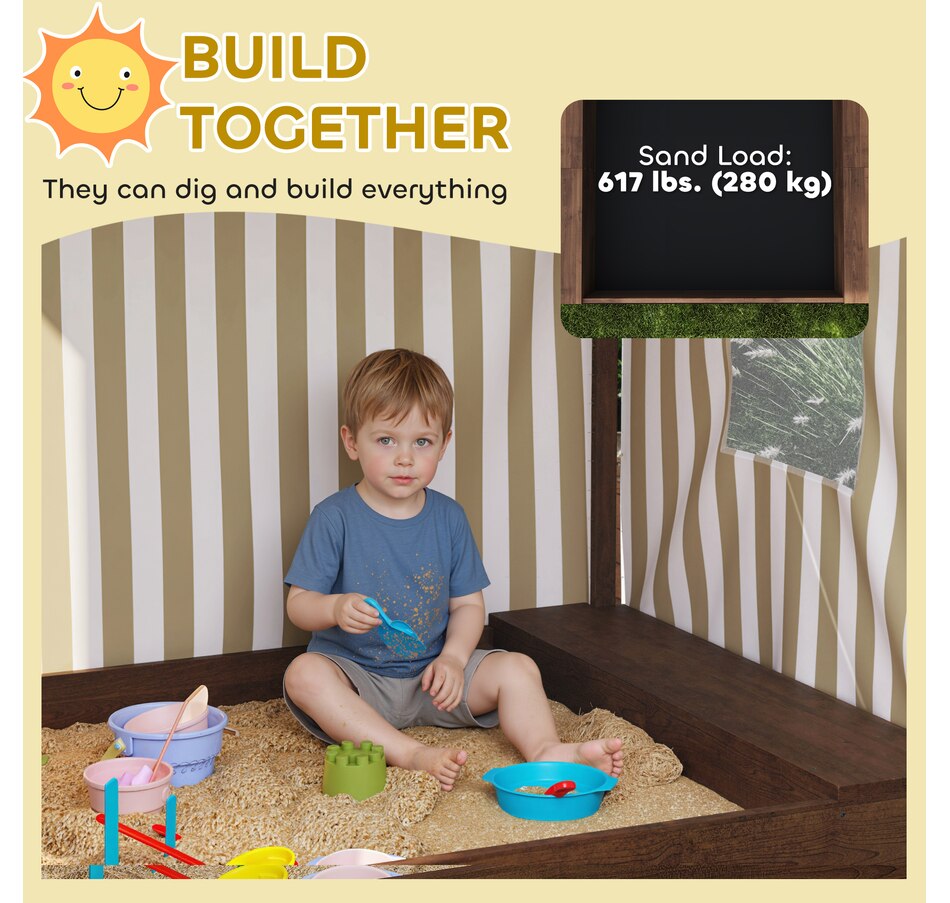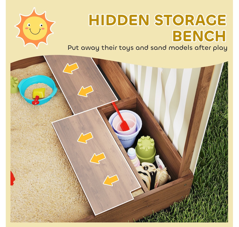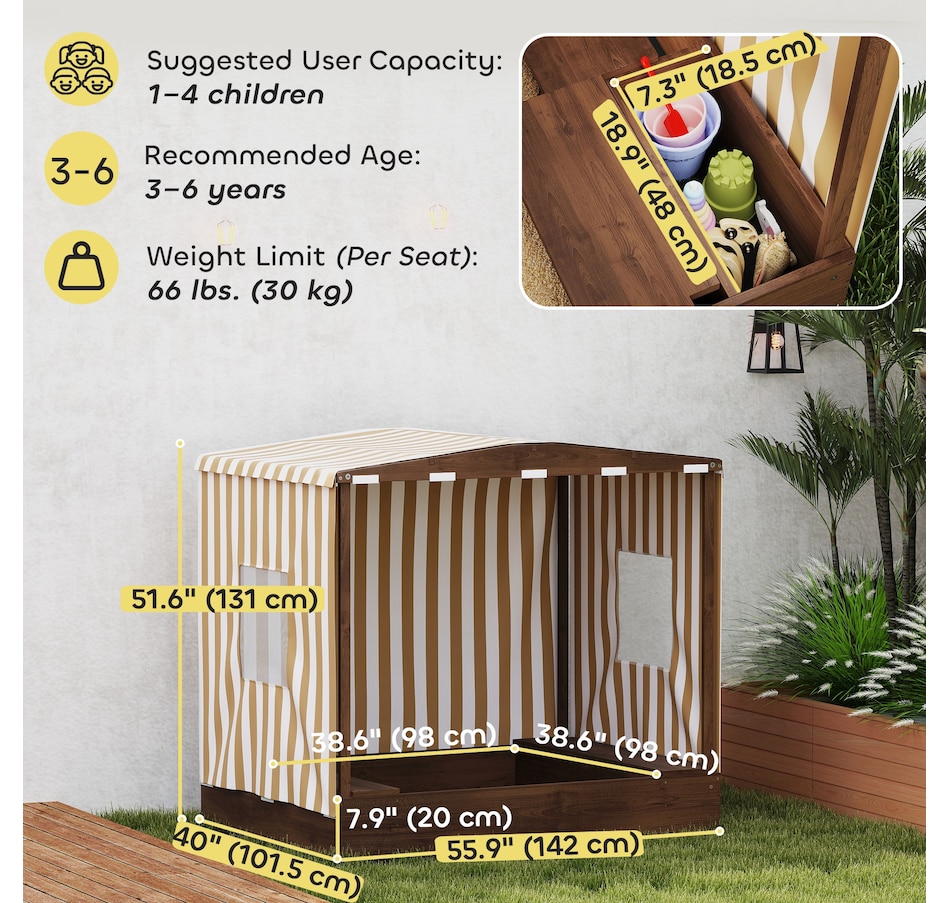 Transform your backyard into a play paradise with the Qaba Kids Sandbox! Featuring a fully covered roof with a mesh door, it offers superb sun protection and keeps those pesky mosquitoes away. Plus, it includes comfy benches for four kids and handy storage slots underneath for all their sand toys. Dive into fun in this spacious sand pit!Features: