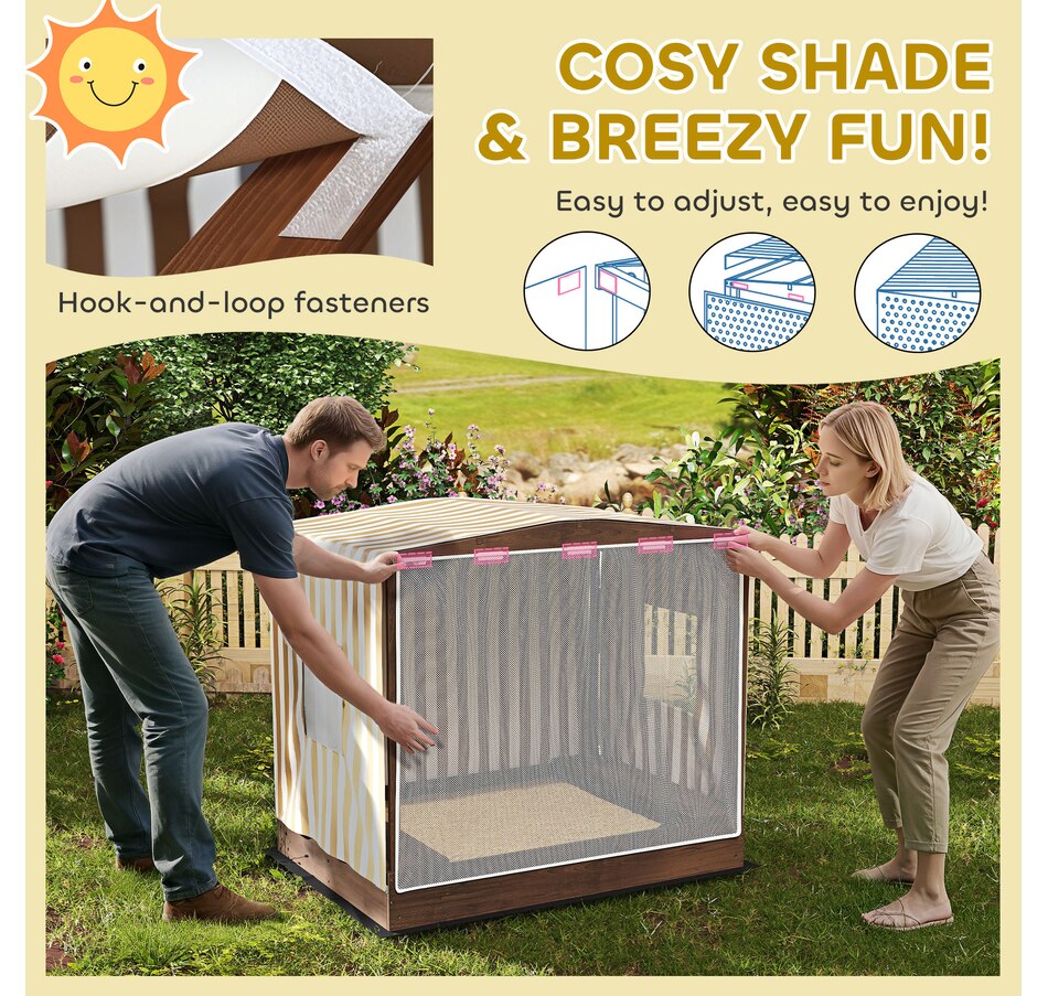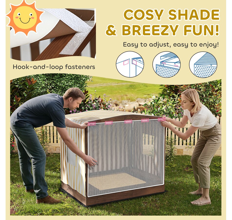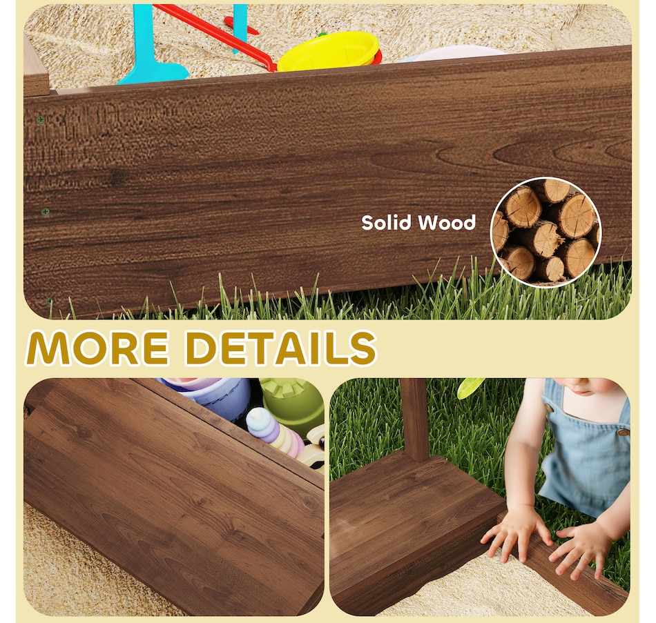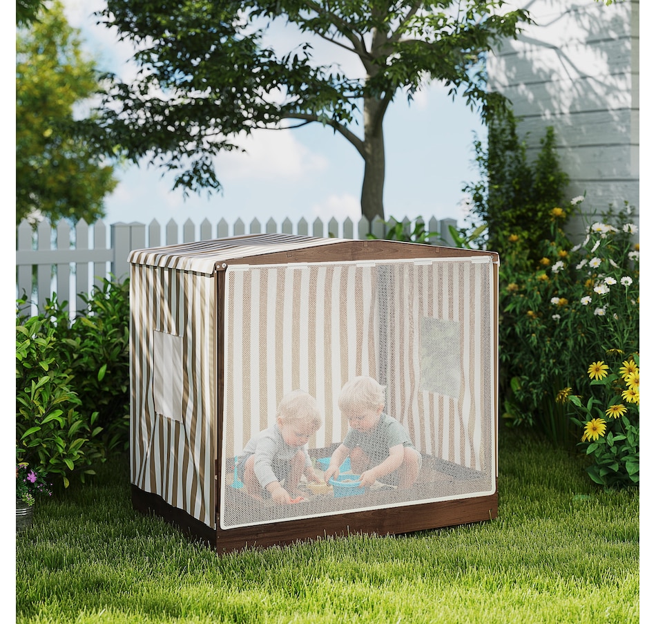 Transform your backyard into a play paradise with the Qaba Kids Sandbox! Featuring a fully covered roof with a mesh door, it offers superb sun protection and keeps those pesky mosquitoes away. Plus, it includes comfy benches for four kids and handy storage slots underneath for all their sand toys. Dive into fun in this spacious sand pit!Features: