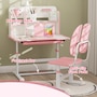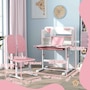 Kids Study Table and Chair, Adjustable Kids Desk and Chair Set, Pink