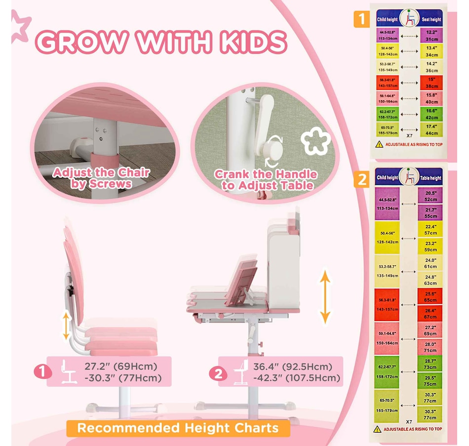 ● Adjust the chair and table's height to accommodate growing children;