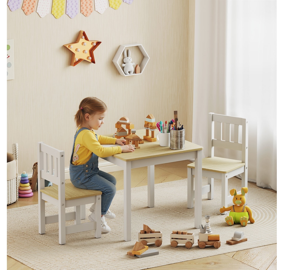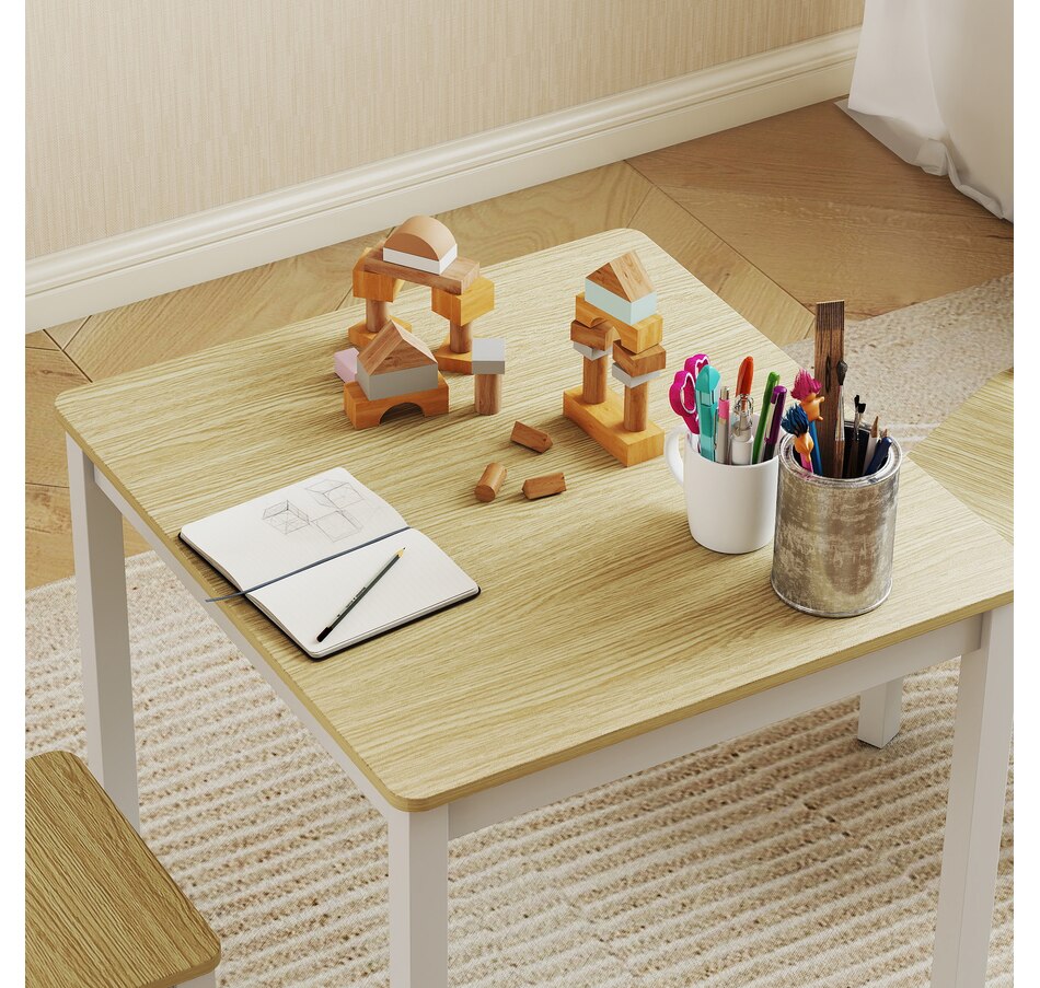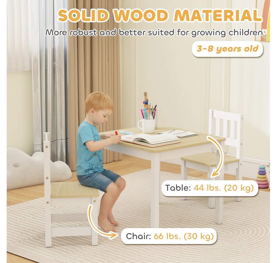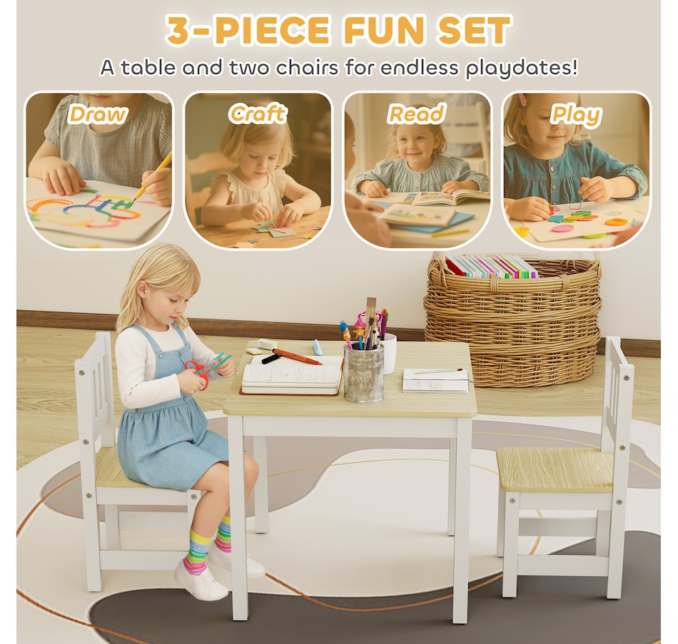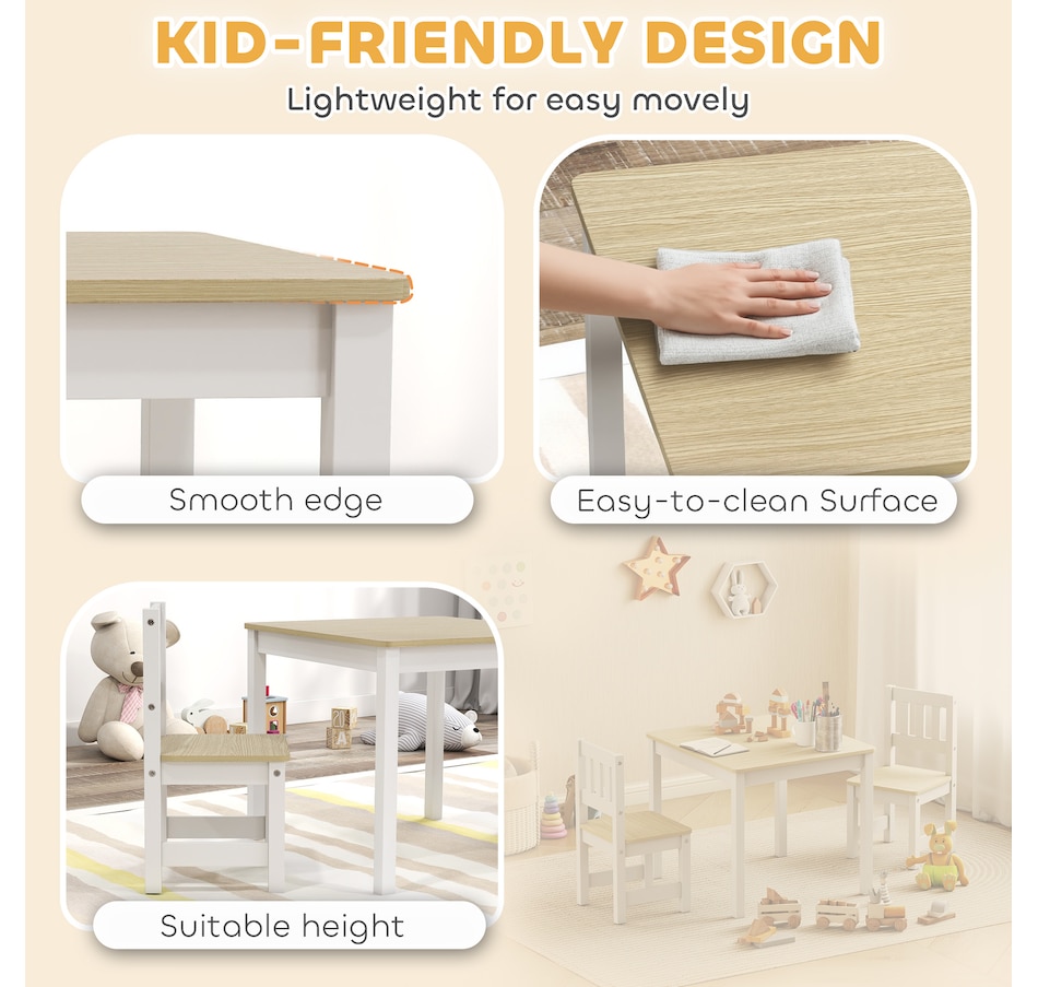 Tired of cleaning crayon marks off the dining table? It's a challenge when kids lack their own creative space, leading to slouching and messes. The Qaba kids table and chair set offers a solution. This toddler table and chair set, made from easy-to-clean wood, provides a dedicated, ergonomic spot for everything from art projects to homework, fostering their independence.Features: