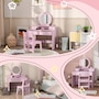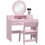 Transform playtime with the Qaba Kids Dressing Table! This delightful set features a vanity table with a clear oval mirror and four drawers, making it great for your little sweetie makeup. Crafted from MDF with safe, rounded edges, this makeup vanity is a charming addition to any playroom. A matching stool completes the dressing table set, so your little ones can primp in style!Features: