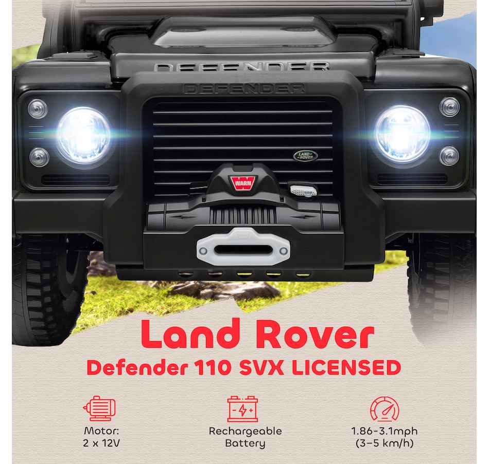 ● Official Land Rover Defender 110 SVX license, realistic look for ride-on truck;