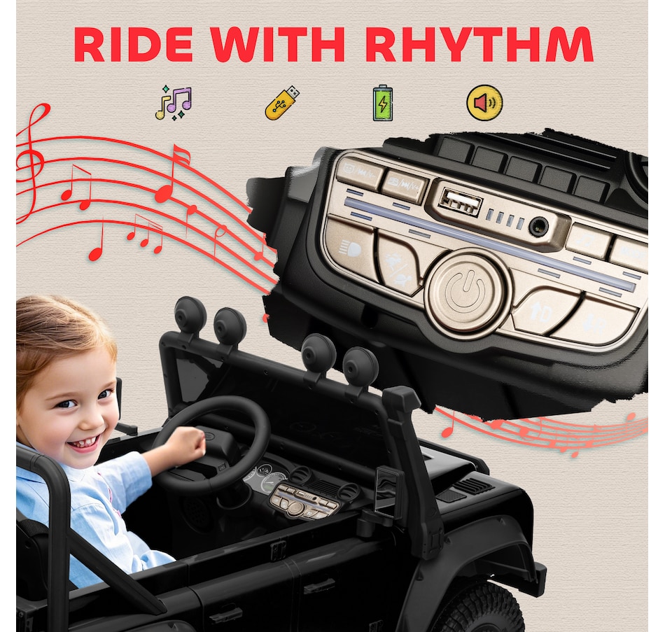 ● Double doors, horn and music buttons, realistic driving experience for kids;