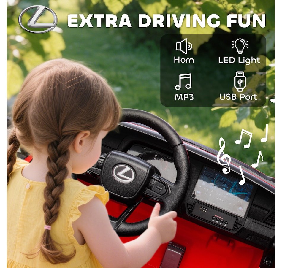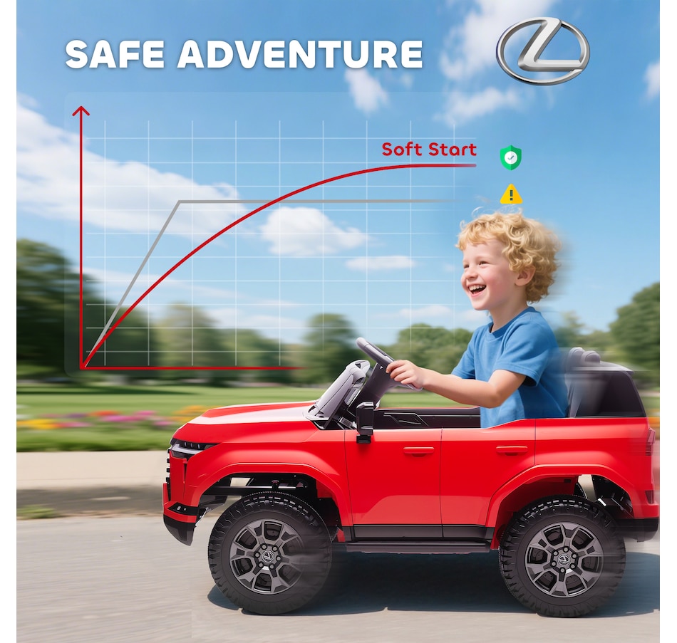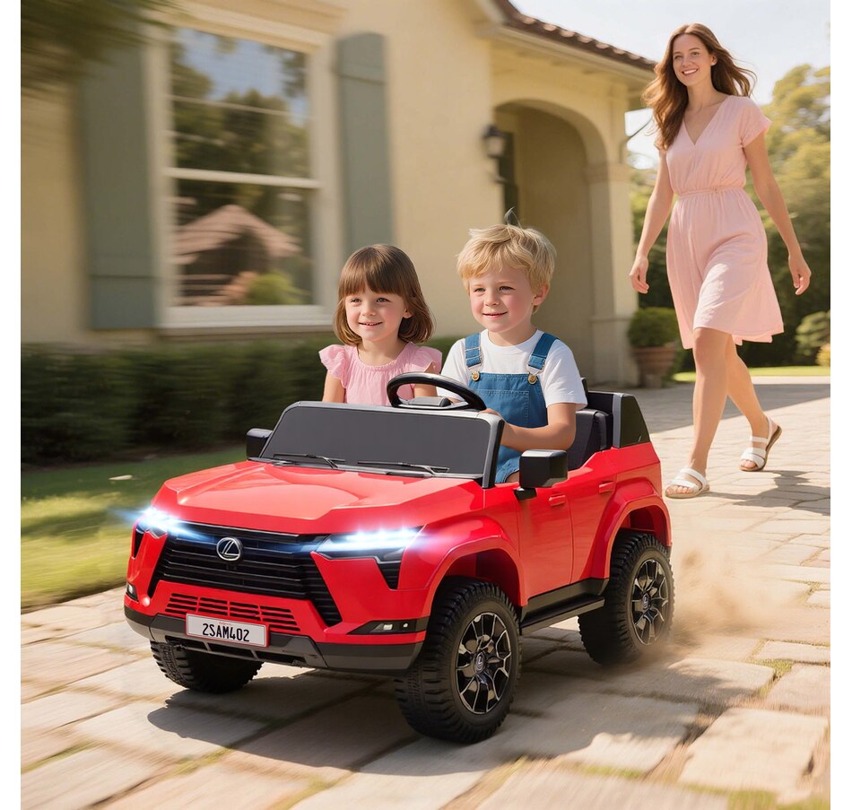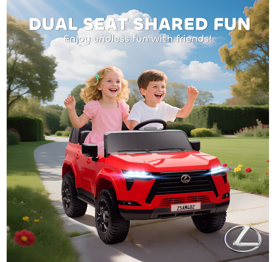 Struggling to find an outdoor toy that siblings can enjoy together without arguments? Let them embark on shared adventures in the officially licensed Qaba Lexus GX550. This dual-motor electric car for kids features a wide two-person seat with a seatbelt, allowing both children to ride safely. Its powerful 12V battery provides every journey is filled with excitement, turning simple playtime into cherished memories of cooperation and fun.Features: