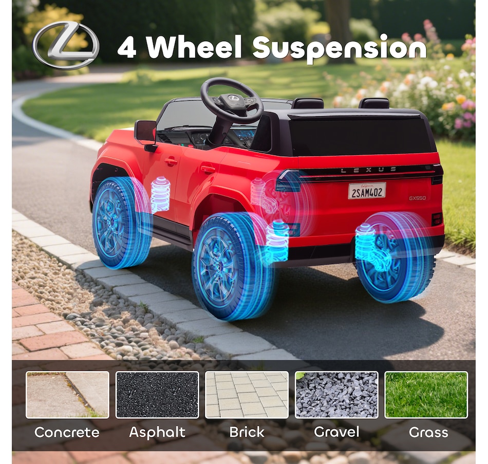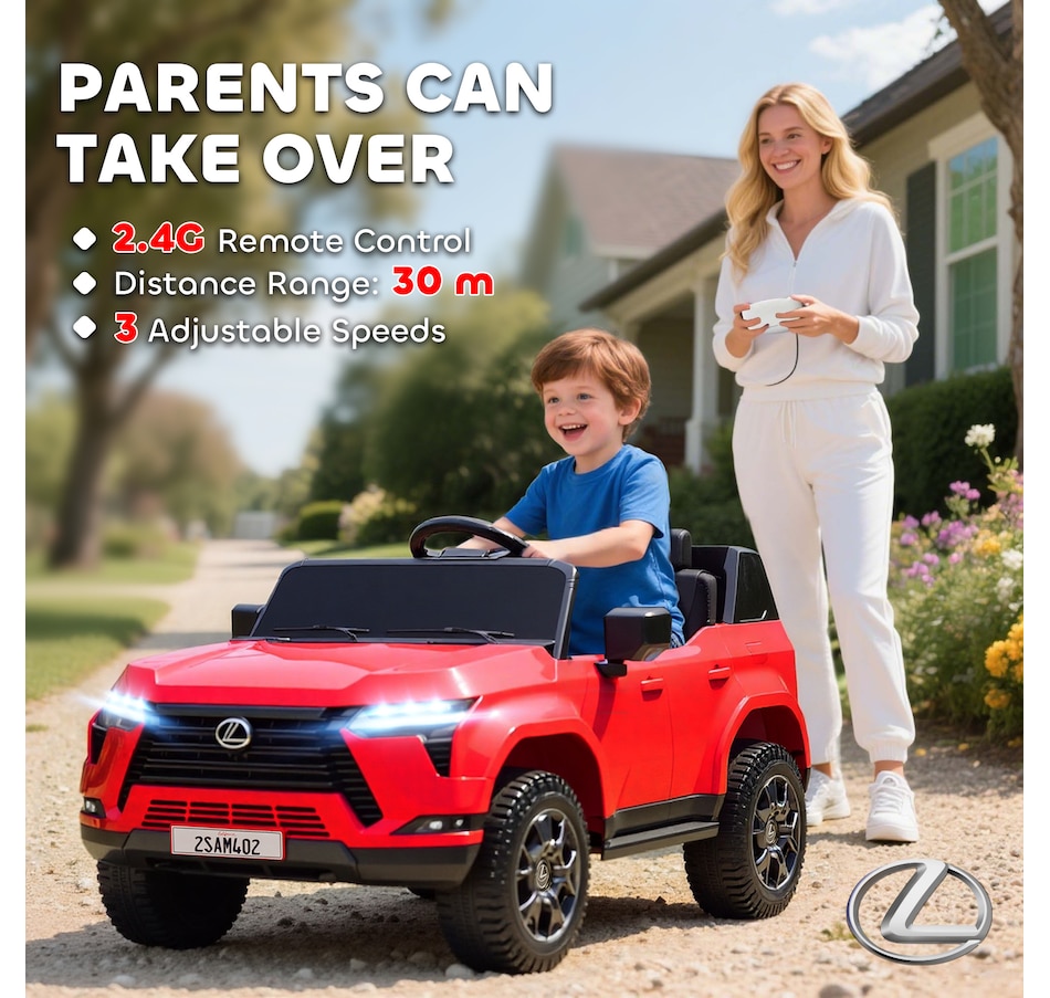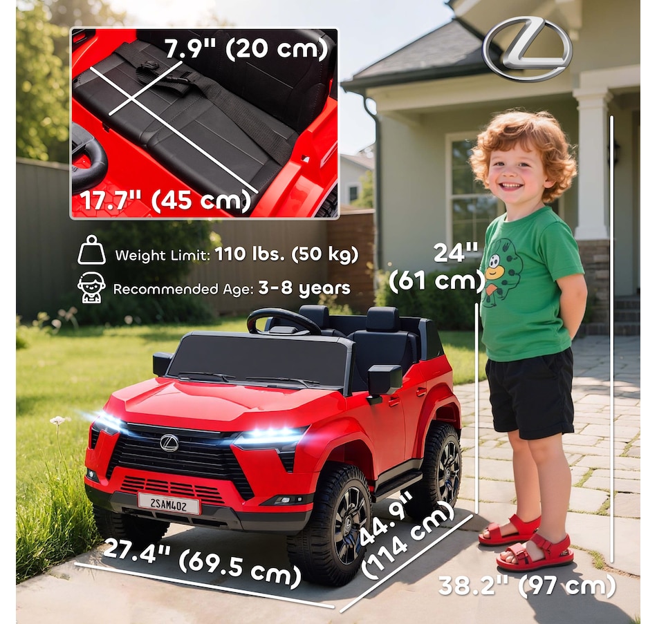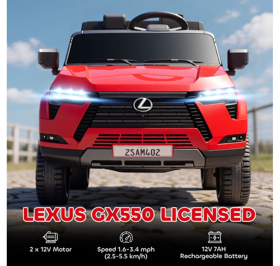Struggling to find an outdoor toy that siblings can enjoy together without arguments? Let them embark on shared adventures in the officially licensed Qaba Lexus GX550. This dual-motor electric car for kids features a wide two-person seat with a seatbelt, allowing both children to ride safely. Its powerful 12V battery provides every journey is filled with excitement, turning simple playtime into cherished memories of cooperation and fun.Features: