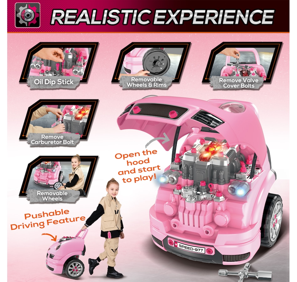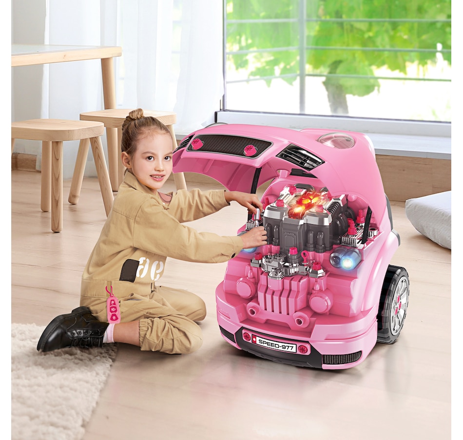 This Qaba kids truck engine toy set is an excellent way to introduce your children to the fundamentals of equipment maintenance. Various fun activities and many "repairable" parts provide hands-on learning, imaginative role-playing, and confidence-building. Each component can be taken apart for "repair" and then reassembled using screw fasteners. You'll enjoy teaching kids about engines and watching them perform tasks like opening the engine cover, replacing spark plugs, and removing the motor.