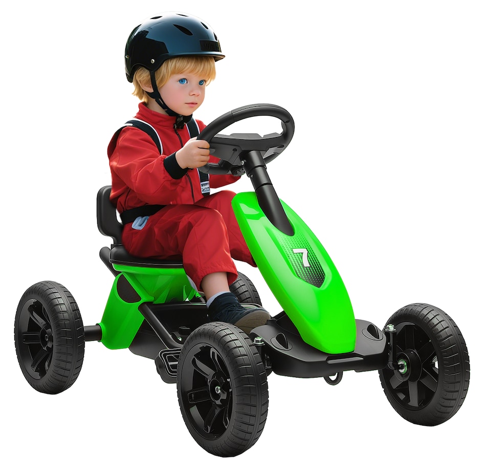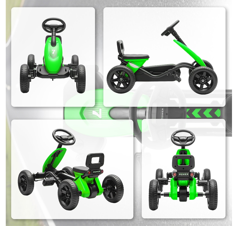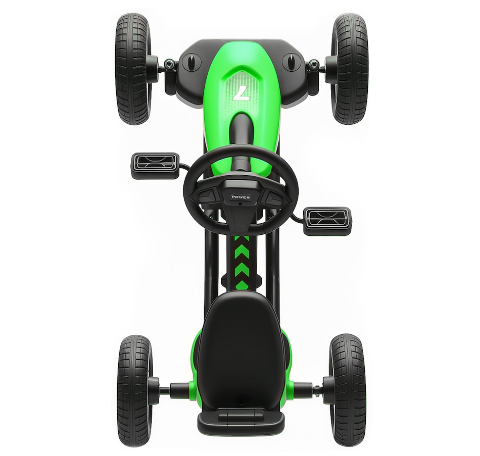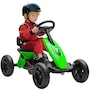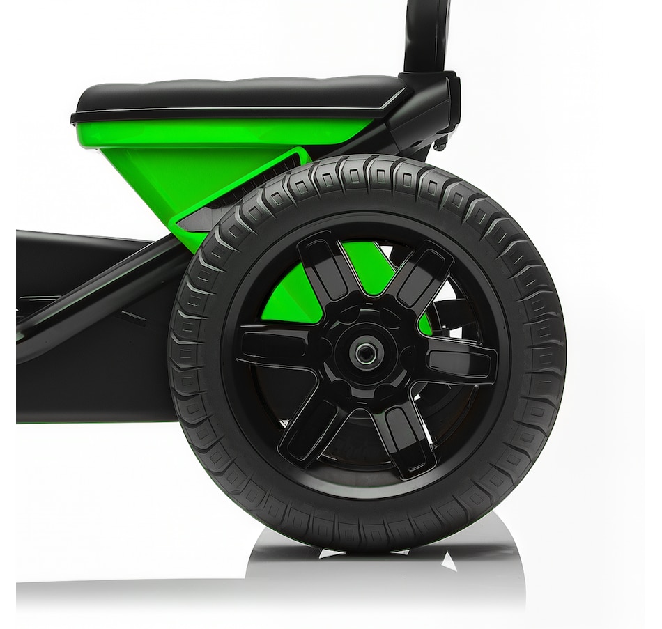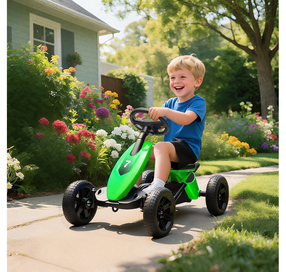 ● Bright green design makes this kids' go-kart stand out outdoors;