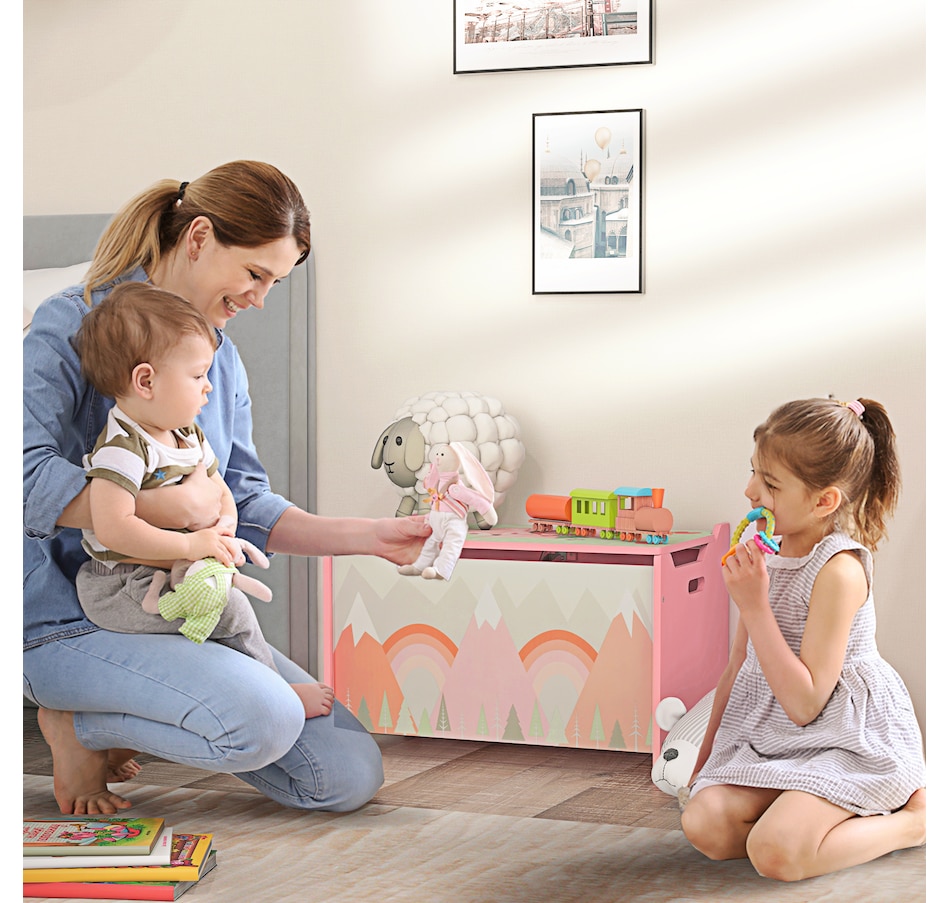 Toy Box with Lid, Toy Chest Storage Organizer for Bedroom, Pink