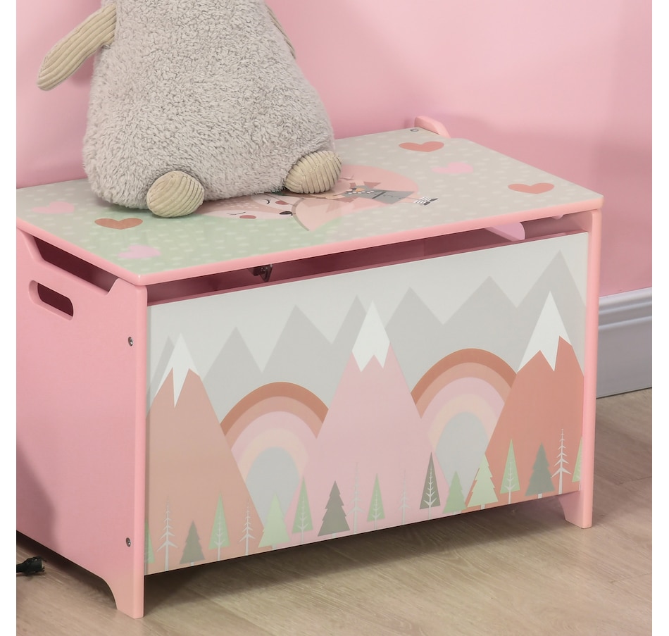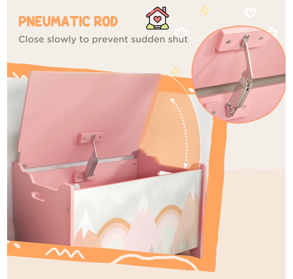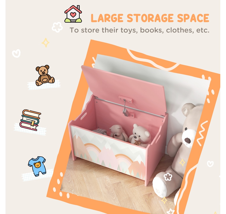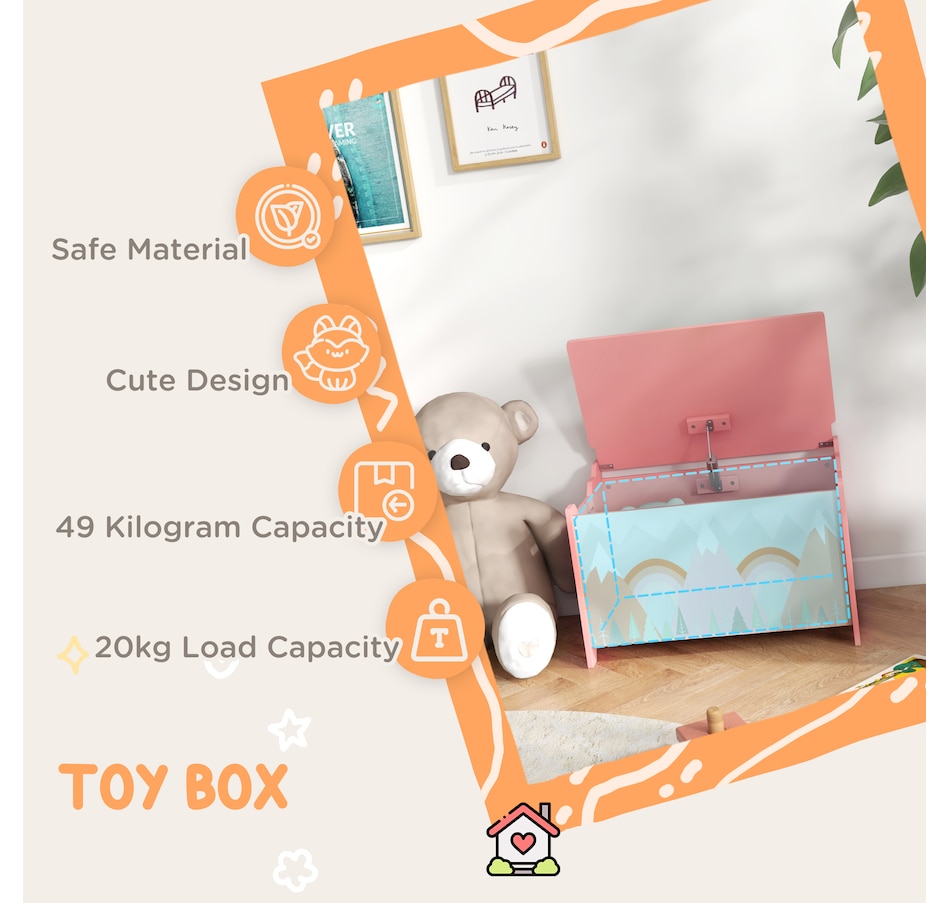 This Qaba storage box offers spacious storage to easily organize kids' toys, books, and clothes, helping keep the room neat and clutter-free. It supports up to 44 lb (20kg) and features a painted and printed finish that adds both durability and charm. The safety hinge design prevents the lid from slamming shut, protecting little fingers during everyday use. A practical and stylish storage solution for the living room, playroom, nursery, bedroom, and moreFeatures: