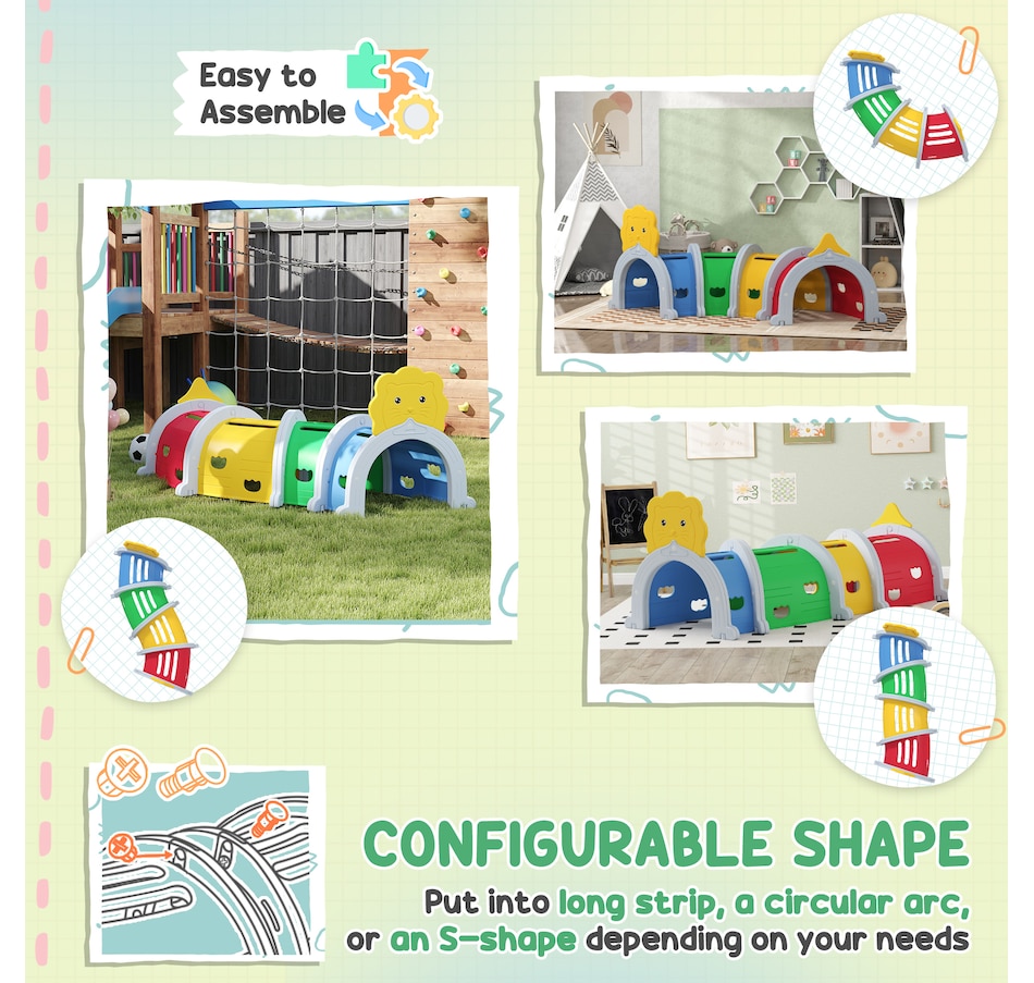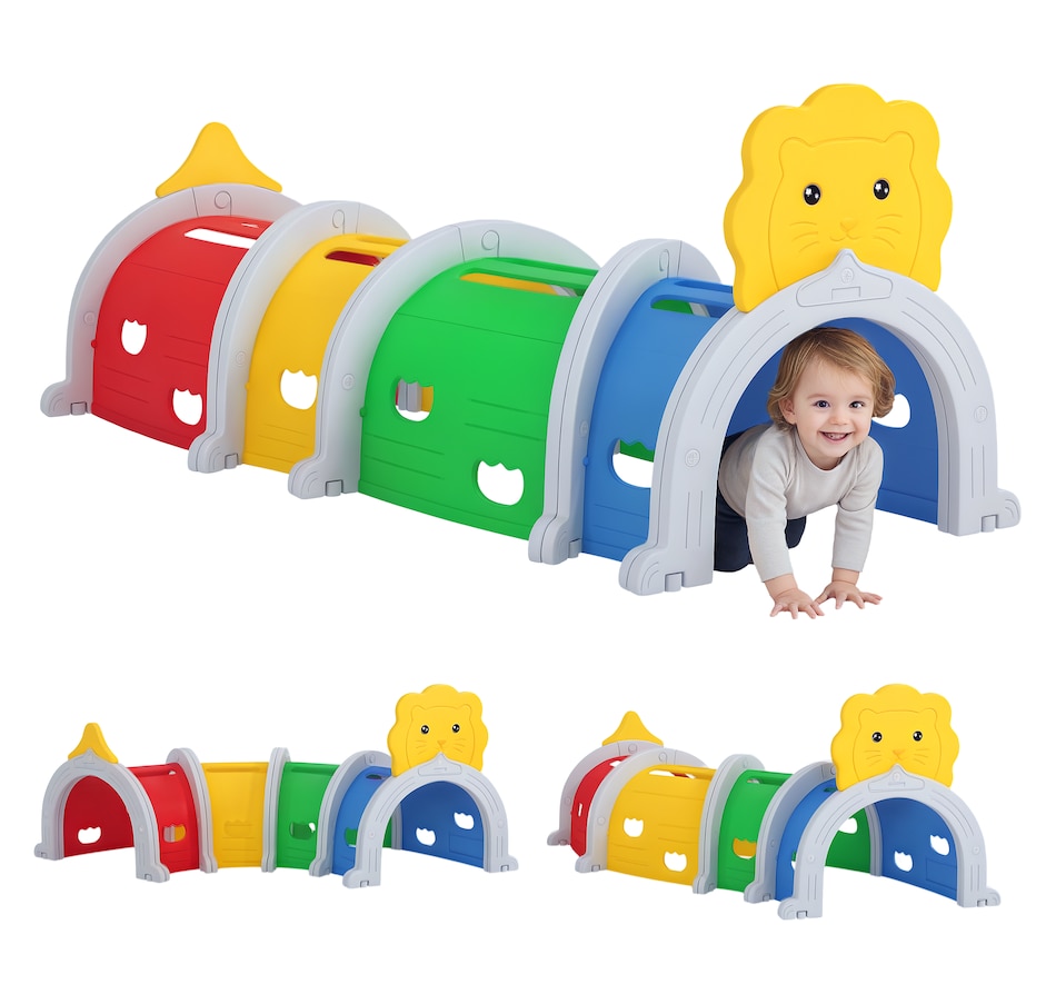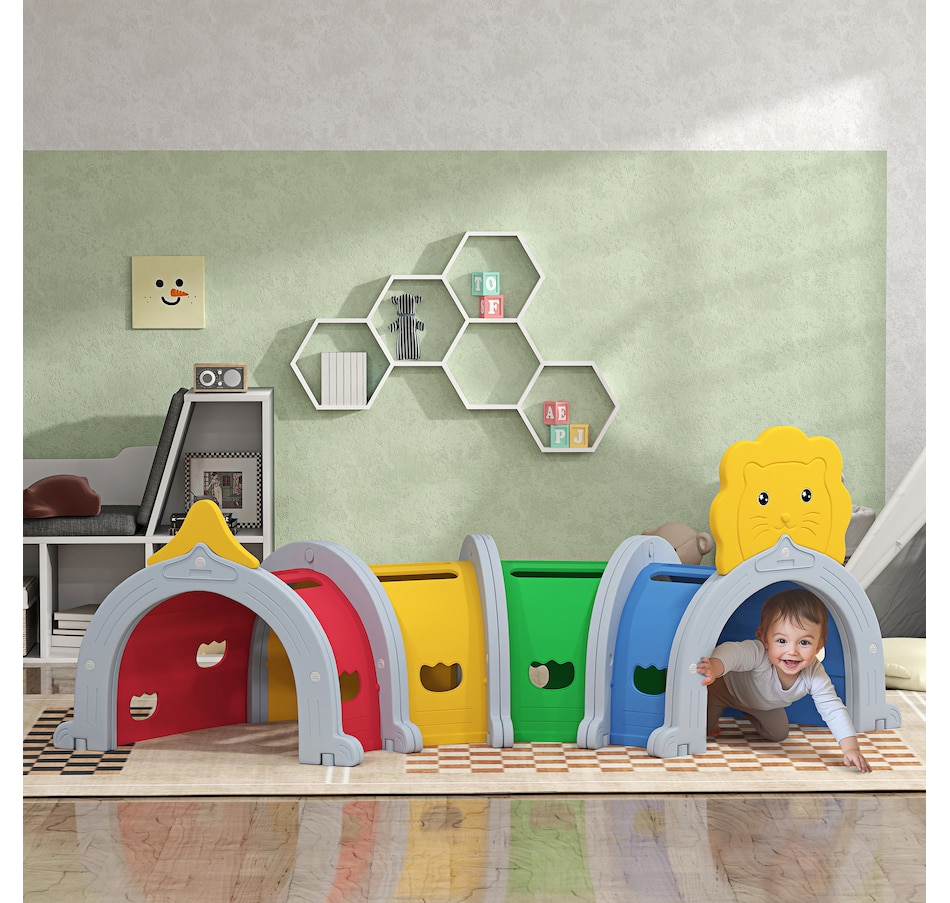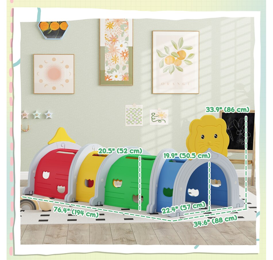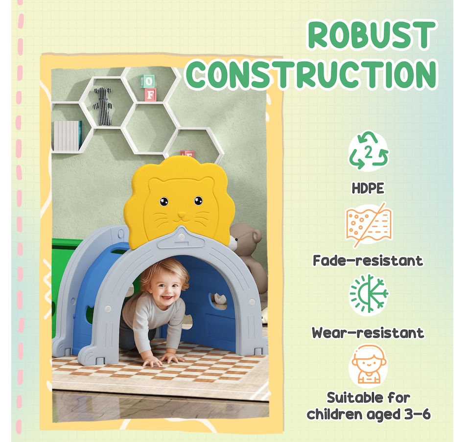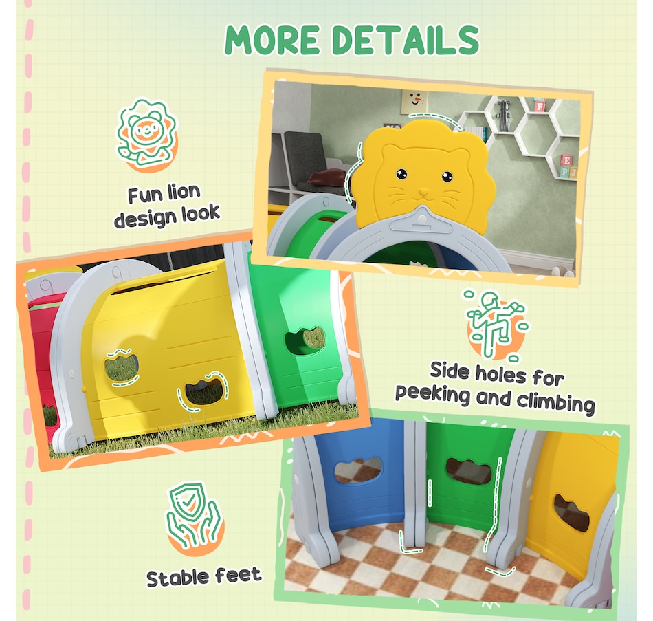 Unleash the roars of fun with the Qaba Kids Play Tunnel! Designed as a charming lion, this baby tunnel transforms into various shapes—long strip, arc, or S-shape—suitable for games of hide and seek or crawling adventures. Fit for both indoor and outdoor use, it encourages active play in toddlers, making it a delightful addition to any playground climbers or baby crawling tunnel collection.