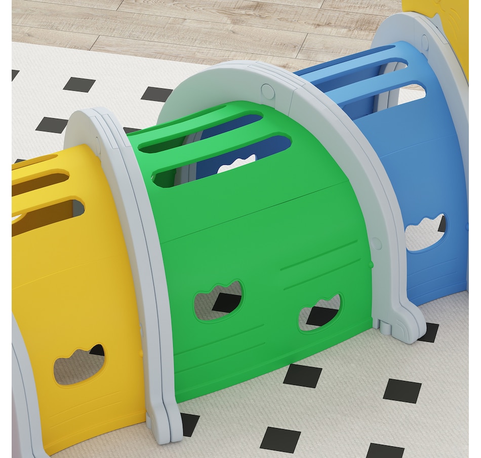 ● Multiple play ways encourage crawling, climbing, hide-and-seek games