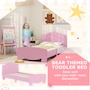 Transform your little baby's room with the Qaba Bed, a bed designed for ease and safety. Its low height provids easy access, while elevated sides keep the mattress in place. Adorably topped with bear-shaped head and footboards, this bed supports growing users from ages 3 to 12, making every bedtime a delightful adventure.Features: