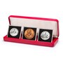 This large-format bronze medallion is about the same size as the silver dollar in the proof set and was officially issued in 1953 by the Royal Canadian Mint as part of the celebration of Queen Elizabeth's coronation. The obverse features a crowned young effigy of the Queen while the reverse features Elizabeth's royal cypher together with "Coronata MCMLIII."