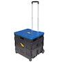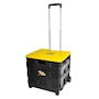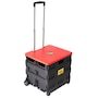 This two-wheeled collapsible handcart features a lid and a retractable handle, and smooth-rolling wheels for easy manoeuvring. It opens up into a large-capacity cart ideal for groceries, laundry, office supplies or just about anything you can think of. It weighs less than eight pounds and folds down to only four inches thick for easy, compact storage. The base holds 80 pounds and the lid supports up to 250 pounds, so you can also use it as a seat or a stepstool to reach for items in higher places.