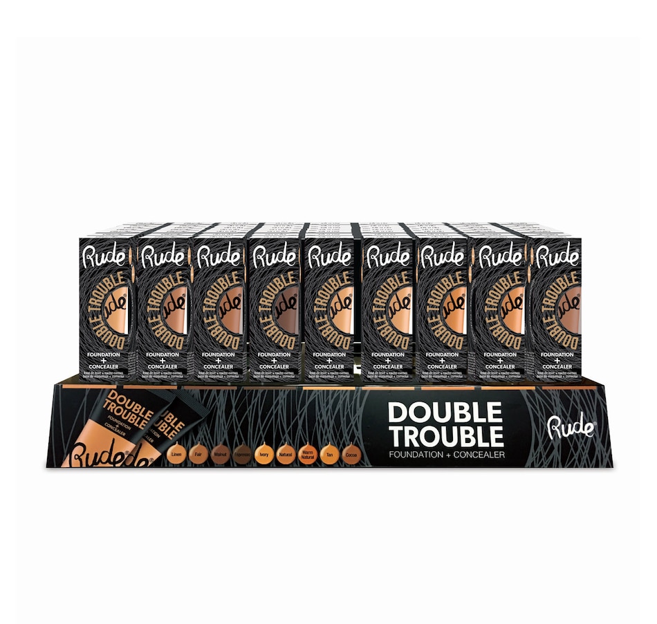 RUDE Double Trouble Foundation Concealer Acrylic Display Set, 108 Pieces