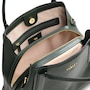 • Detachable crossbody strap, twin handles with padded tabs, metal feet