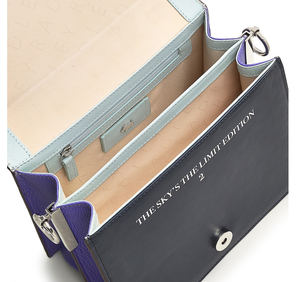 Settle in for the next edition of Book Street. The Tales of the Sky is set under the glorious Northern Lights, which comes to life with applique and prints, while mini gemstones and metal studs add a sparkling, cosmic finish. The signature two-compartment shape is carefully crafted in leather.