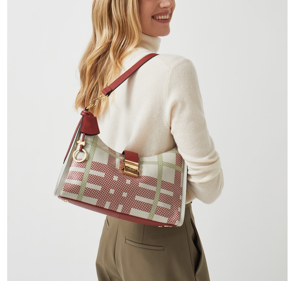The 90's shape-inspired slouchy shoulder bag that's back at the top of fashion insiders' wish lists, this latest interpretation is crafted with check-print leather and stitch details. It finishes with inverted edge seams and a branded push-lock features you'll find throughout the Sloane Street collection.