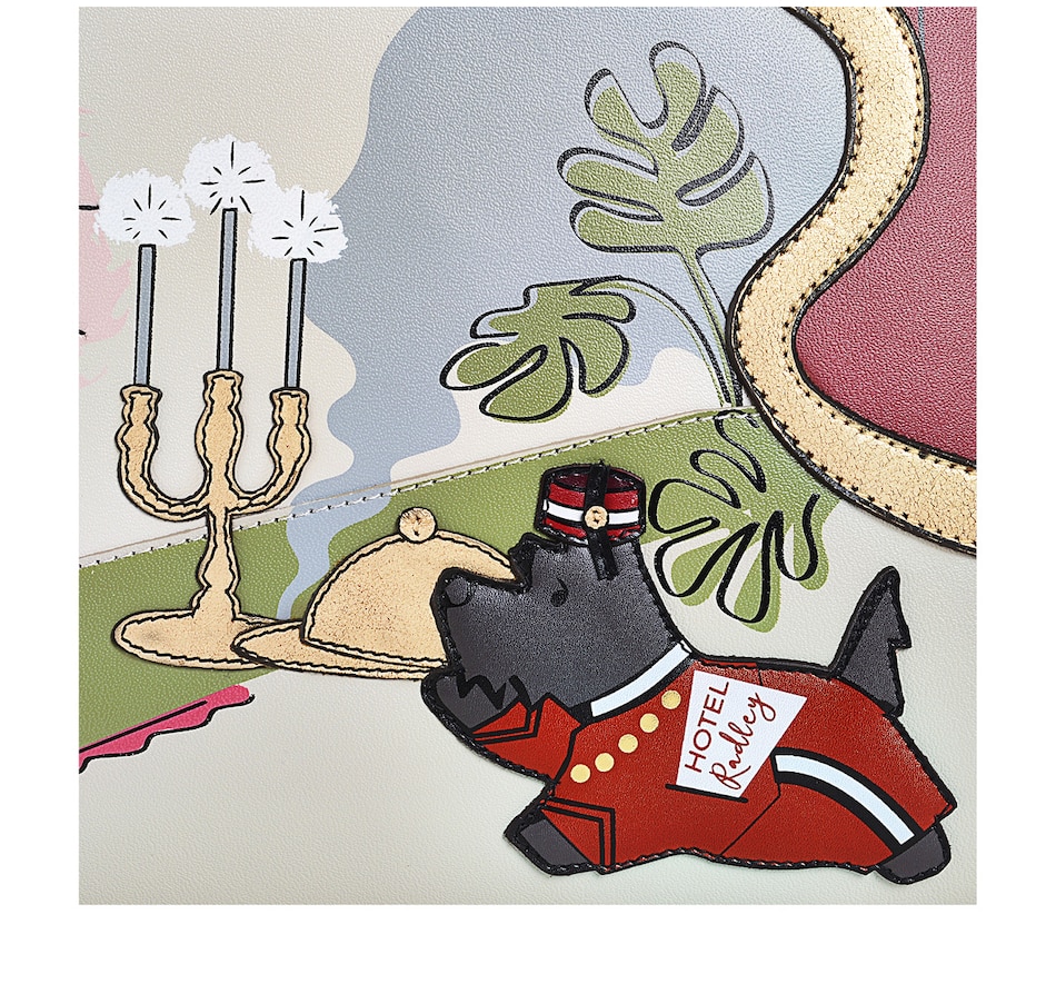 Enjoy your stay! This new picture bag welcomes you to Hotel Radley, where all guests are treated to five-star luxury, courtesy of a very charming bellboy. Take a look around; you'll find care in every detail of the signature three-compartment shape, from the leather applique and screen prints, right down to the final stitches.