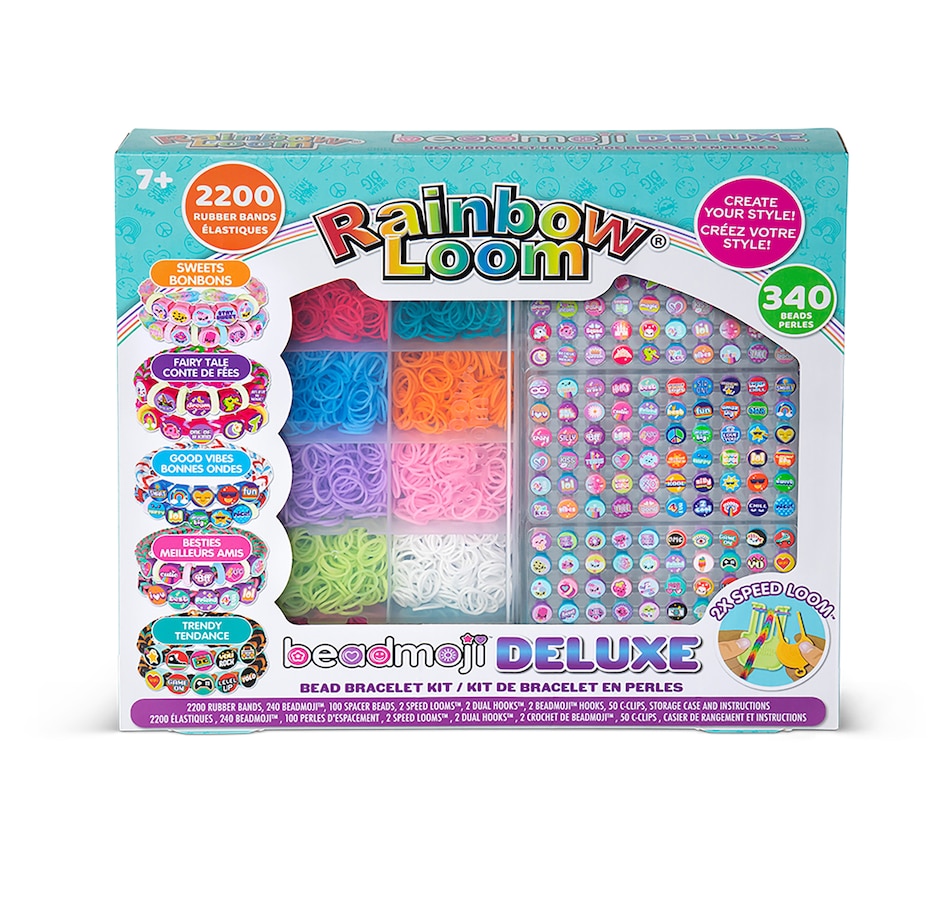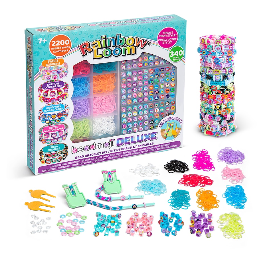 Beadmoji are unique beads that feature fun messaging and icons that allow you to decorate your rubber band jewelry with a wide variety of trendy themes. Beadmoji features a new speed loom and dual hook allowing you to create rubber band bracelets twice as fast. Create your own style by mixing and matching your rubber bands with over 300 beads to chose from! Beads come in these popular kid friendly themes: Sweets, Fairy Tale, Good Vibes, Besties, and Trendy. Use these cute beads to create hundreds of customizable bracelets to keep and wear or share with friends and family! Easy to use and includes all tools to add the beads to your bracelets plus a high quality organizer case to store rubber bands, beads, hooks and looms