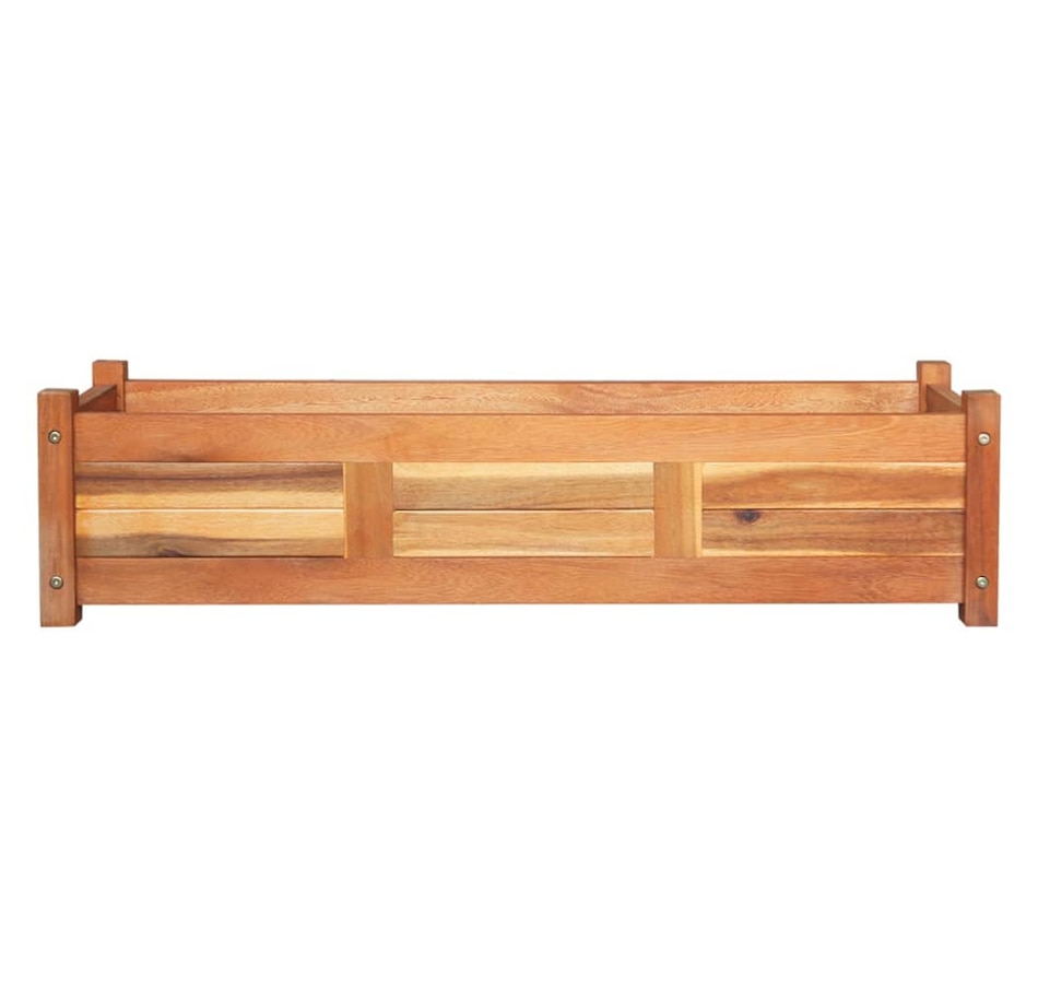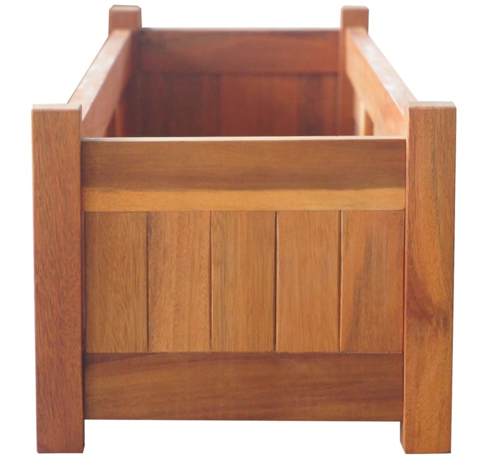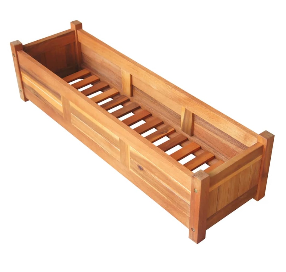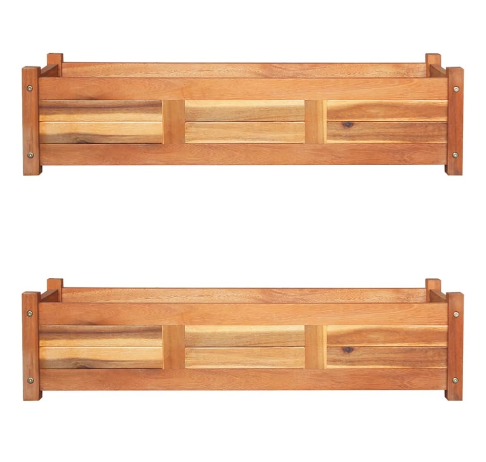 This set of 2 wooden raised garden beds is extremely durable and beautifully crafted. It is deep and wide enough to hold a large amount of soil and provide ample space for your plants, vegetables, herbs and flowers. Thanks to its simple rectangular design, it will be an elegant accessory to any balcony, terrace or patio. Made from high quality acacia wood, this planter is very sturdy and durable. This planter is also oil finished to give the wood a warm, rustic color. The bottom of the planter is slatted, which keeps the soil in and allows excess water to drain away.