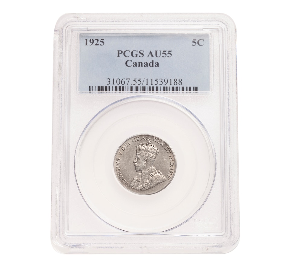 Rare Key Date 1925 Five-Cent Coin PCGS Certified About Uncirculated 55