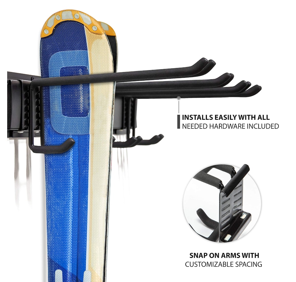 - Universal ski storage rack keeps the family’s gear neatly stowed for safekeeping & easy access