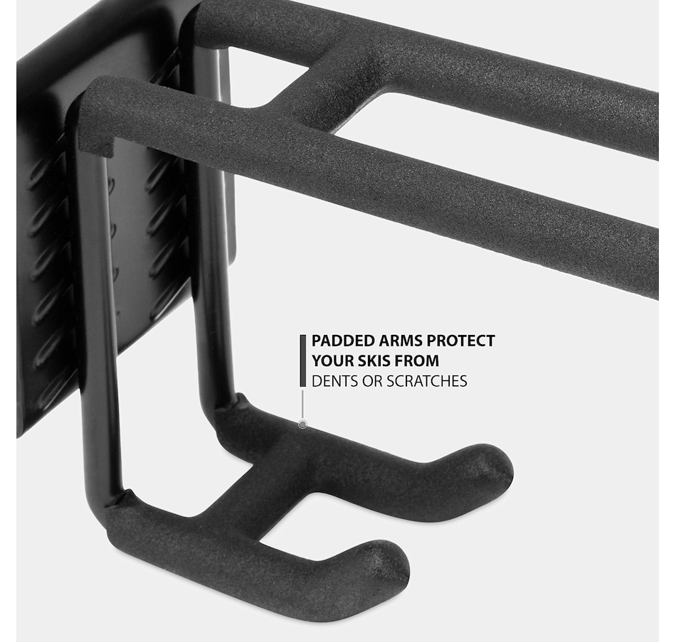 - Hooks feature soft rubber coating can be custom spaced along the rack to suit the size of your skis