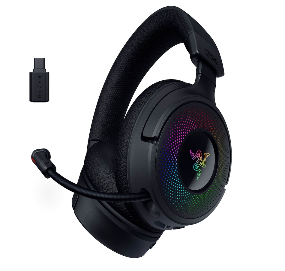This gaming headset from Razer features a three-part driver design that pushes out exceptional highs, mids and lows and doesn’t muddy, providing a more dynamic listening experience for deeper immersion, and its advanced 7.1 surround sound lets you enjoy true-to-life acoustics that optimizes your game’s sound design so you can hear everything as if you were right in the middle of it all. It also has a retractable Razer HyperClear Super Wideband mic that offers high-definition, pro-level voice quality, covering a wider frequency range of sound and capturing an incredible amount of detail in your voice, so that everything you say sounds clear, rich and natural.