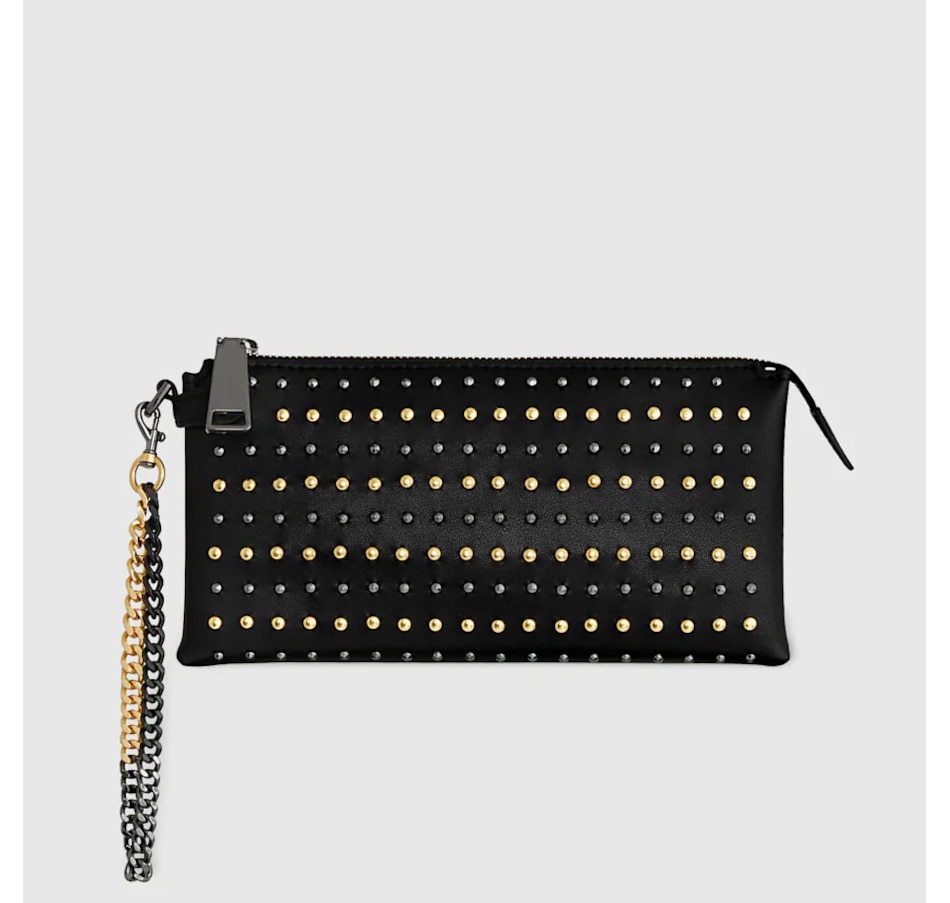 The Cuff Me Up clutch from Rebecca Minkoff is a fabulous conversation starter! Adorned with meticulously placed studs, this clutch is crafted with the finest leather to enable durability and style. Its sleek design will be sure to turn heads.