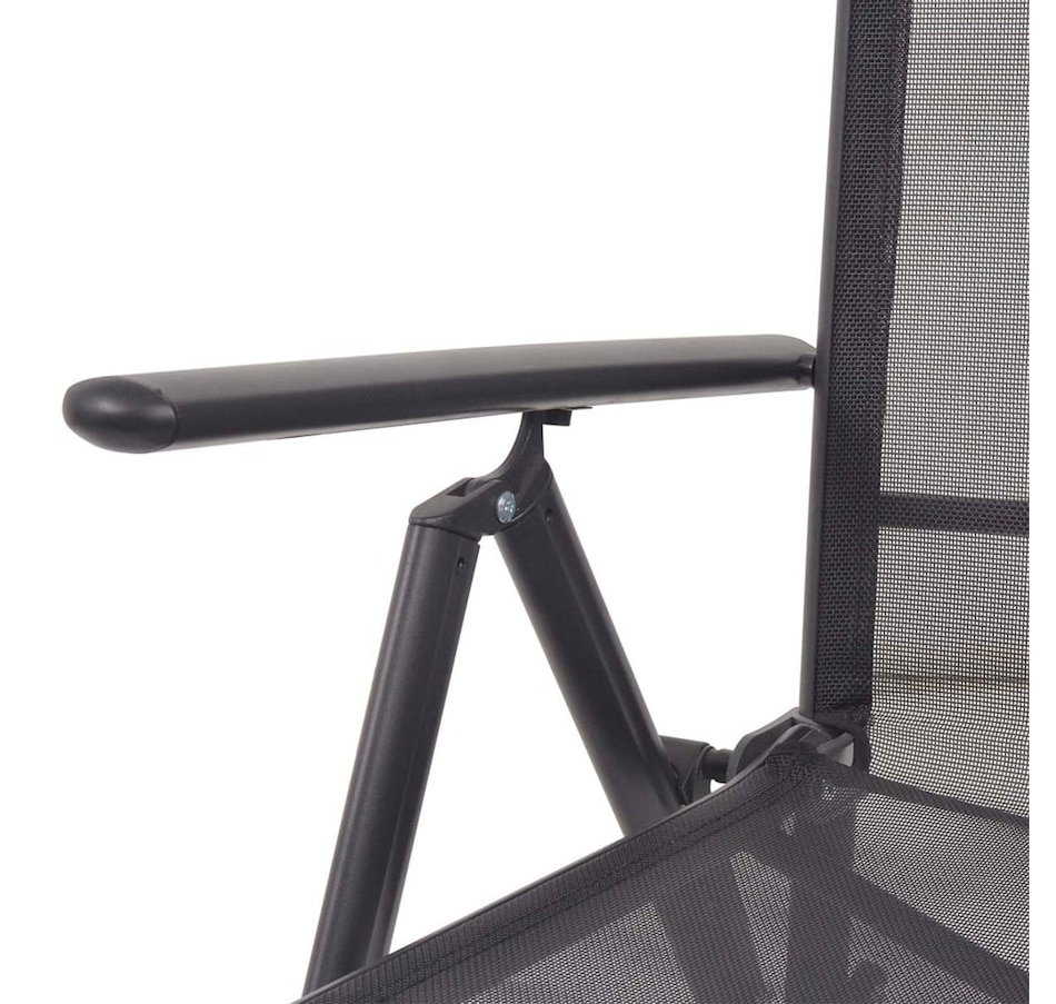This quality reclining lounge chair is a perfect combination of style and functionality. It features a 100% aluminum frame and textilene seat and back and has been designed for year-round outdoor use. It will provide a comfortable place for you to sit comfortably to chat with your family or friend, or simply to read or relax. The back of the chair is adjustable to 7 different positions, so you can always find the most comfortable position. The 100% aluminum frame is very sturdy and durable. Weather-resistant textilene makes the chair easy to clean. The armrests are made of durable wood-plastic composite, which is weather and UV resistant. The seat has an additional place for the footrest which can be folded when not in use. Since the chair is lightweight, it can be easily moved and it is foldable to save space. Note: We recommend covering the chair during rain, snow or frost.