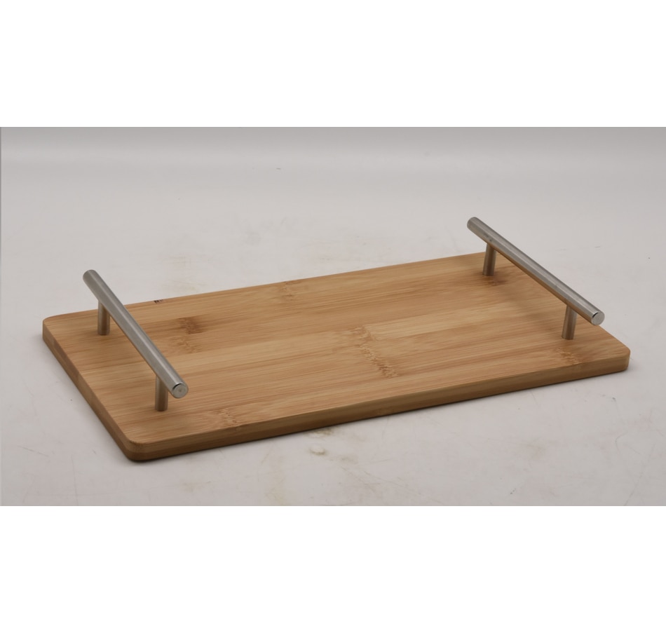 A beautiful and unique eco-friendly bamboo serving tray can be used for just about anything from serving breakfast in bed to display tray for your coffee table. Constructed from high-quality bamboo with the perfect accent of chrome finish handles for easy carrying..Modern design.Dimension: 33x16x4.2CM.Made with eco-friendly bamboo material..