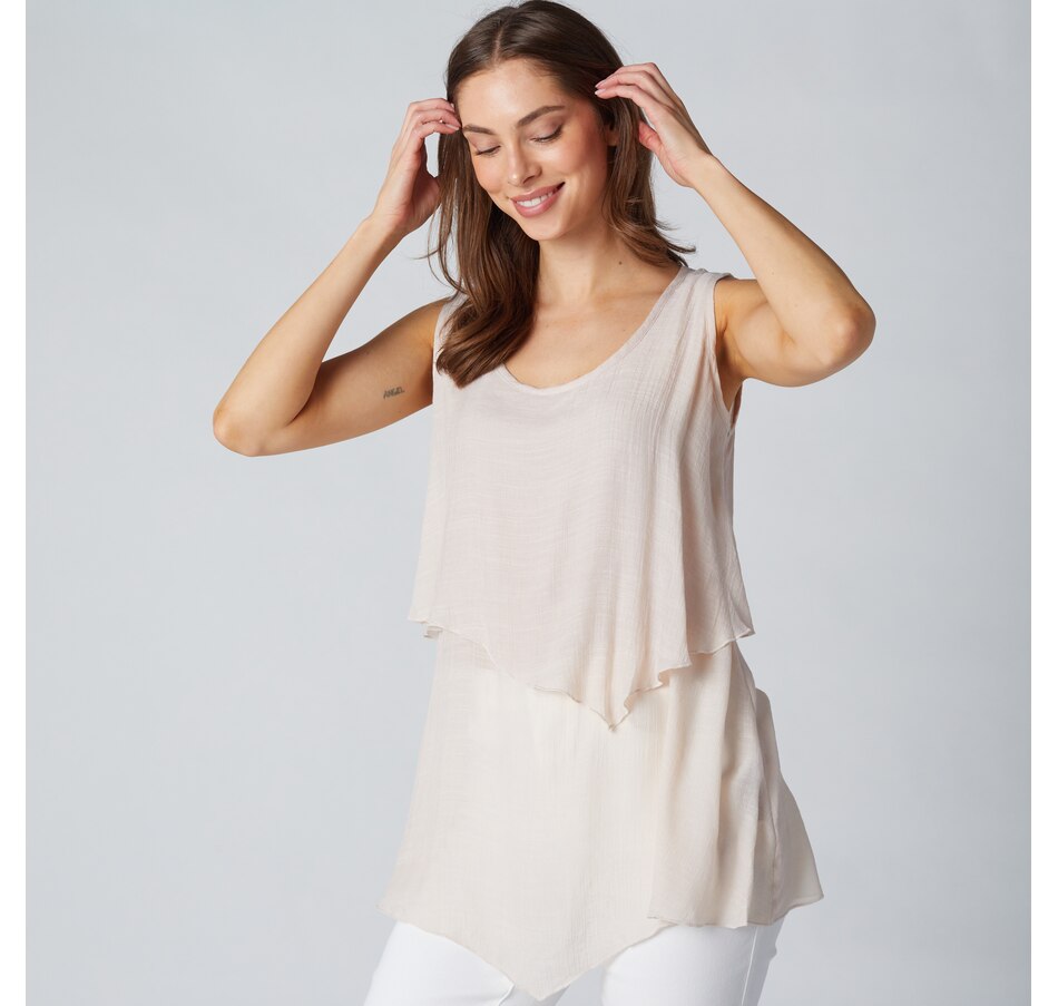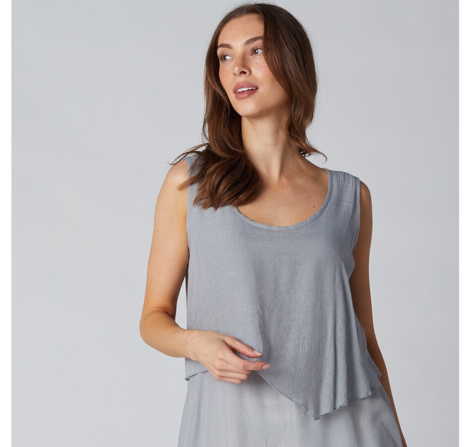 Centre your look in undeniable style with this double layer linen-like tank top with pocket from Red Coral. Please note, the crinkled fabric is part of the nature of this garment; it is intentional.