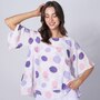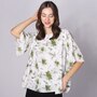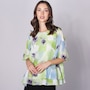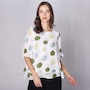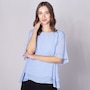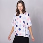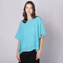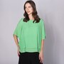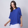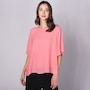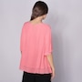 • Loose fit, short sleeve, double layered faux linen, button loop closure at back of neck