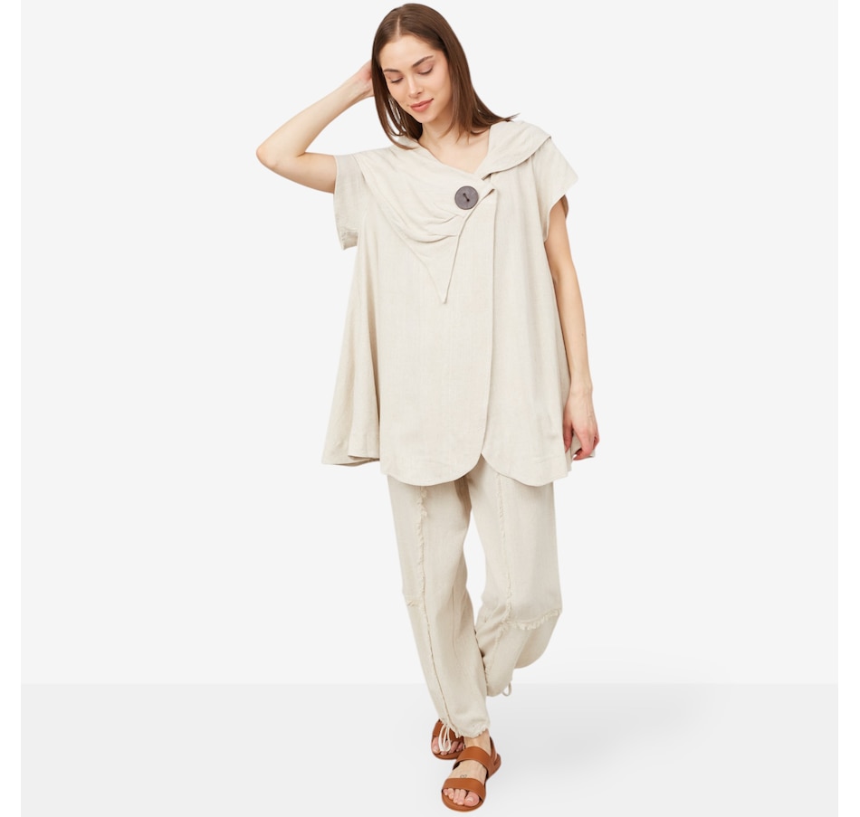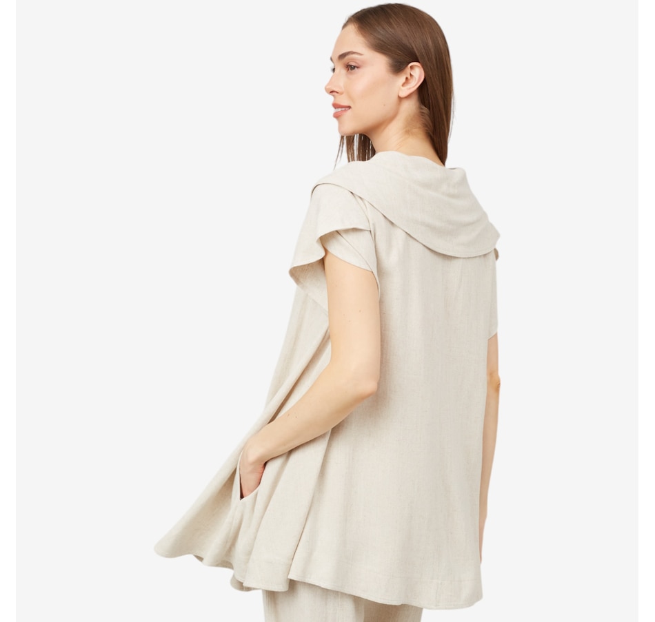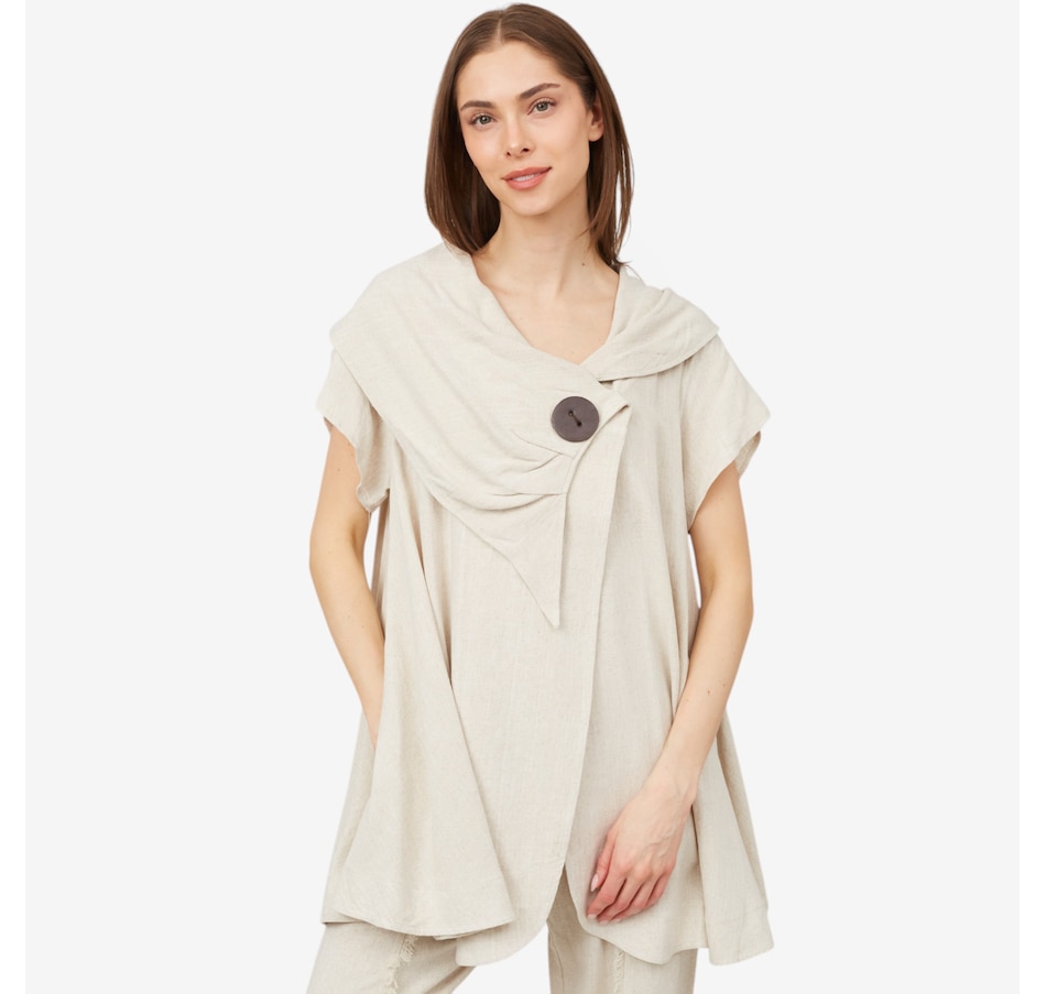 Breezy and chic, you'll elevate all your summer looks in beautiful style wearing this oversized collar linen blend jacket from Red Coral.