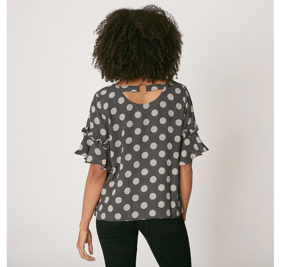 Red Coral Polka Dot Ruffle Sleeve Top