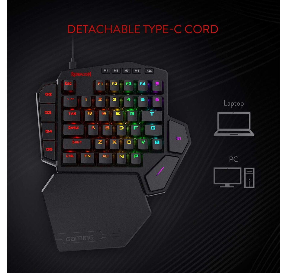 • Redragon K585 DITI One-Handed RGB Gaming Keyboard (portable 42 keys, clicky blue switches)