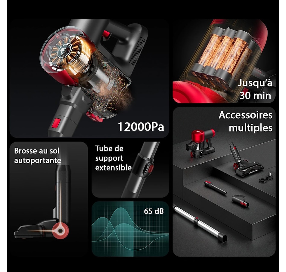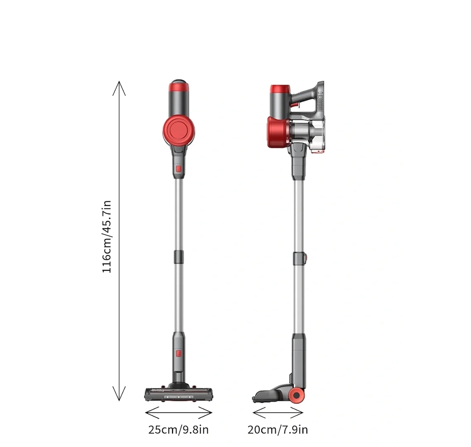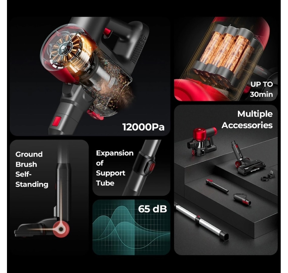 Clean up dirt, dust and debris from floor to ceiling with the Redroad L6 cordless stick vacuum. It comes with a removable lithium-ion battery with up to 30 minutes of continuous runtime on a single charge. It easily converts from a stick vacuum to a small area vacuum, a high-reach vacuum or a handheld vacuum. An anti-tangle multi-surface brush roll helps extract fine dust from hard floors, and vacuums embedded dirt, dust and debris.
